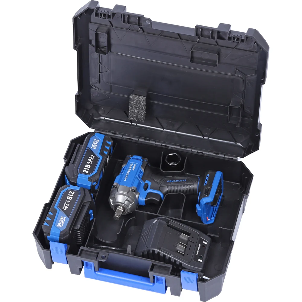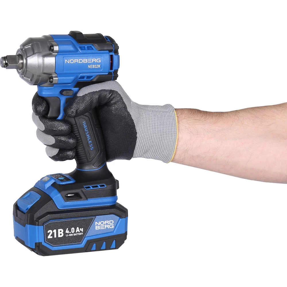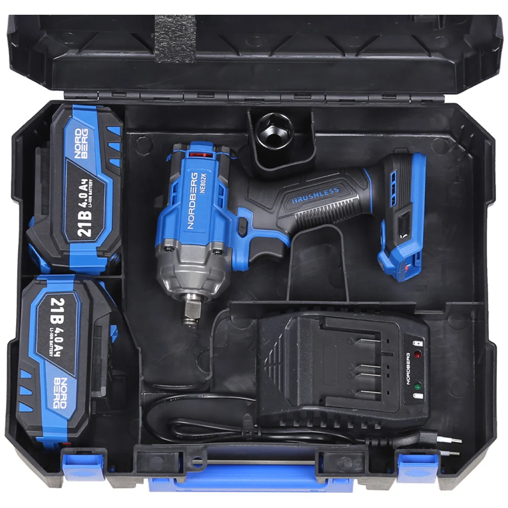 Гайковерт аккумуляторный NORDBERG 1/2, 21В, 500 Нм с двумя 4A аккум. и зар. уст-вом, в кейсе NE802K