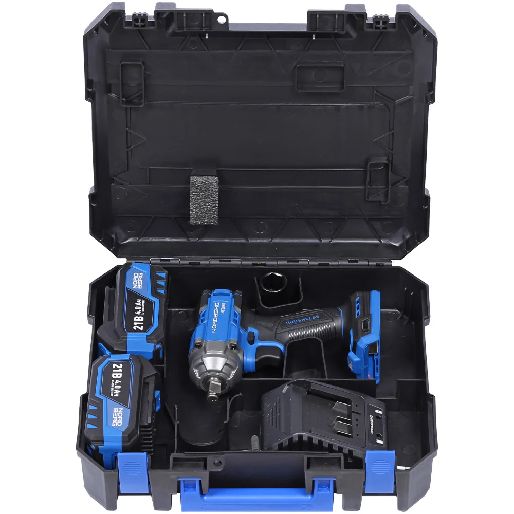 Купить Гайковерт аккумуляторный NORDBERG 1/2, 21В, 500 Нм с двумя 4A аккум. и зар. уст-вом, в кейсе NE802K по лучшей цене с доставкой - интернет магазин №1 в России