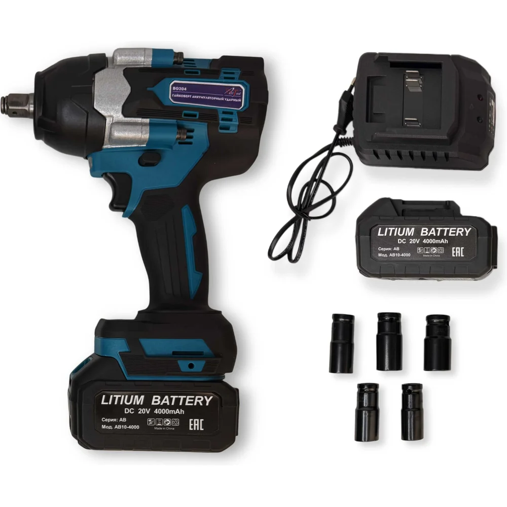 Гайковерт аккумуляторный ударный AktiTool BG204 SET (700 H*m, 20В, Li-ion аккумулятор 4000 mAh 2 шт, ЗУ, набор головок, кейс) 101311