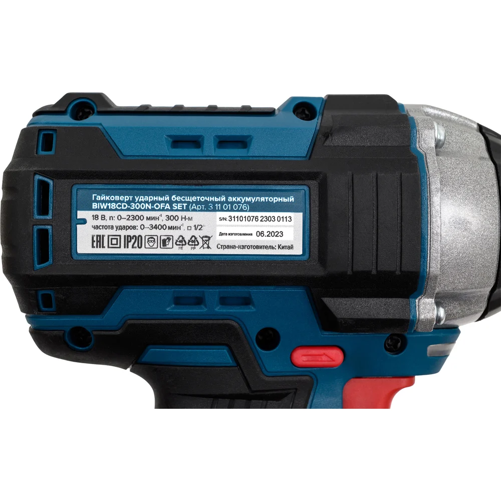 Гайковерт аккумуляторный ударный бесщеточный Кратон BIW18CD-300N-OFA SET (АКБ 4,0А·ч; ЗУ + кейс) 3 11 01 076
