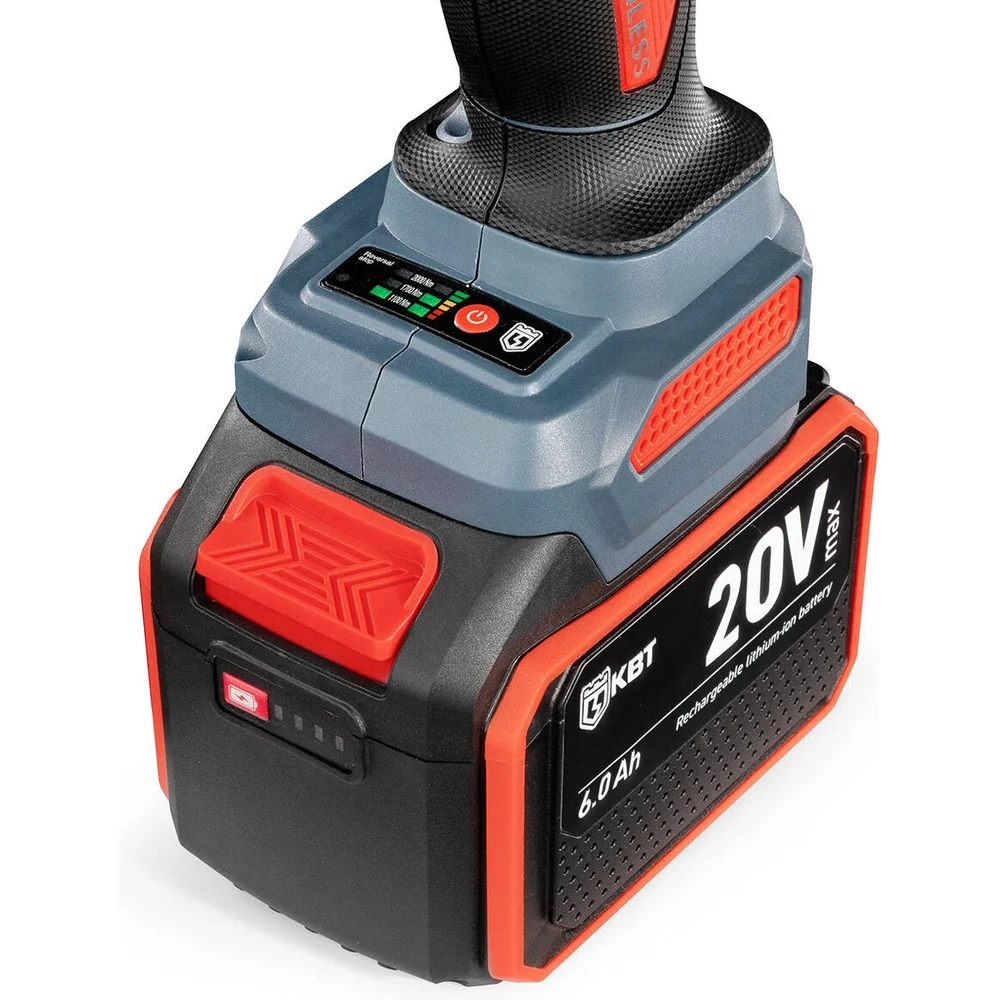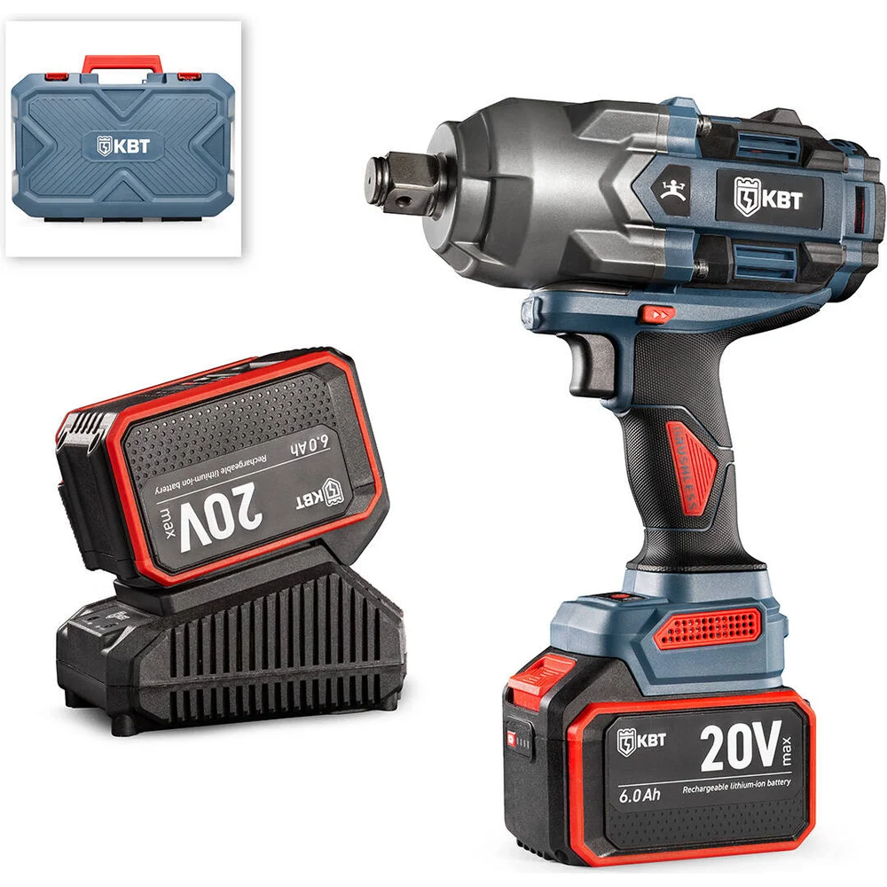 Комплектация Бесщеточный ударный гайковерт WB-20-2000; 2 аккумуляторные батареи: Li-Ion, 20 В/6Ач; Зарядное устройство от сети 230 В; Фиксирующий штифт и резиновое кольцо для его фиксации; Прочный пластиковый кейс; Паспорт; Картонная коробка