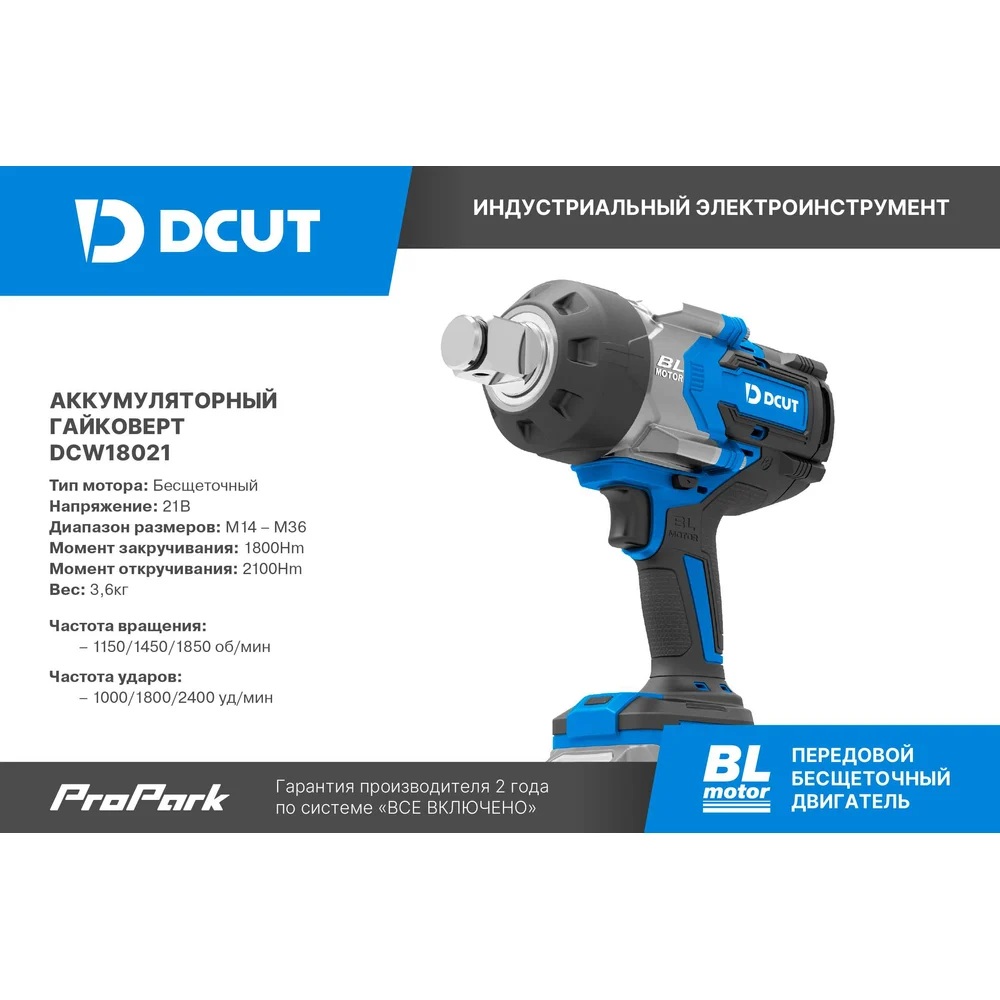 Купить Гайковерт ударный ак. DCUT DCW18021, 1, 1800Нм, на откруч. 2100Нм, дв.подсветка, D21, 4 реж. удар, кор DCW18021-SP2 по лучшей цене с доставкой - интернет магазин №1 в России
