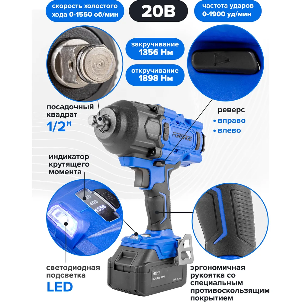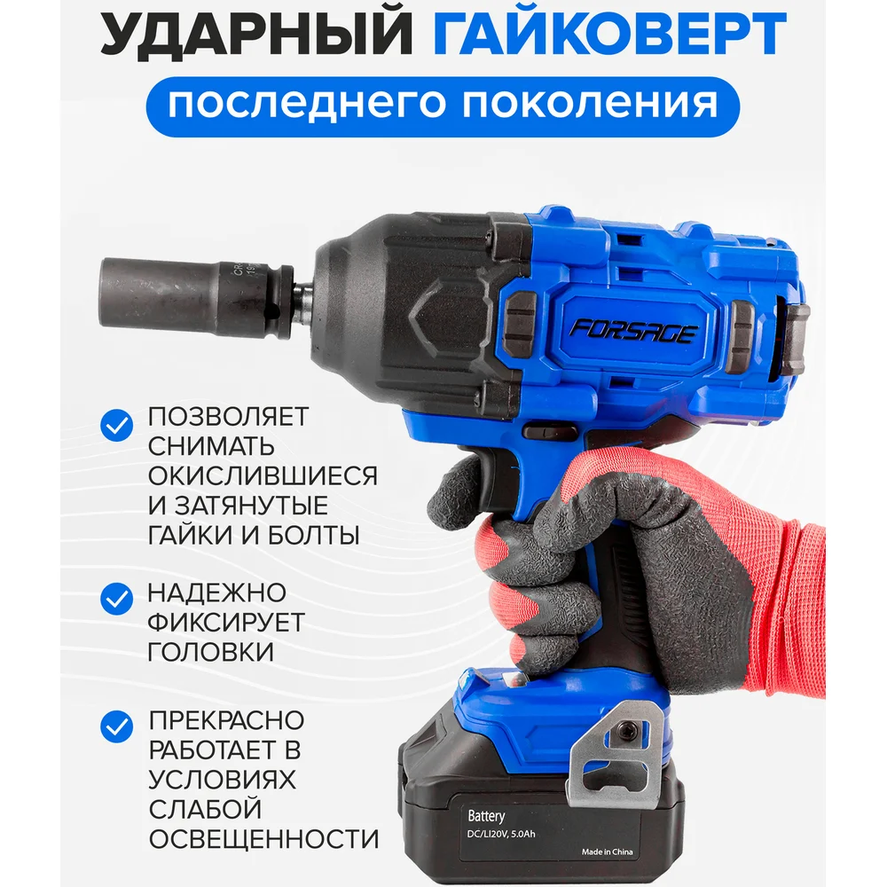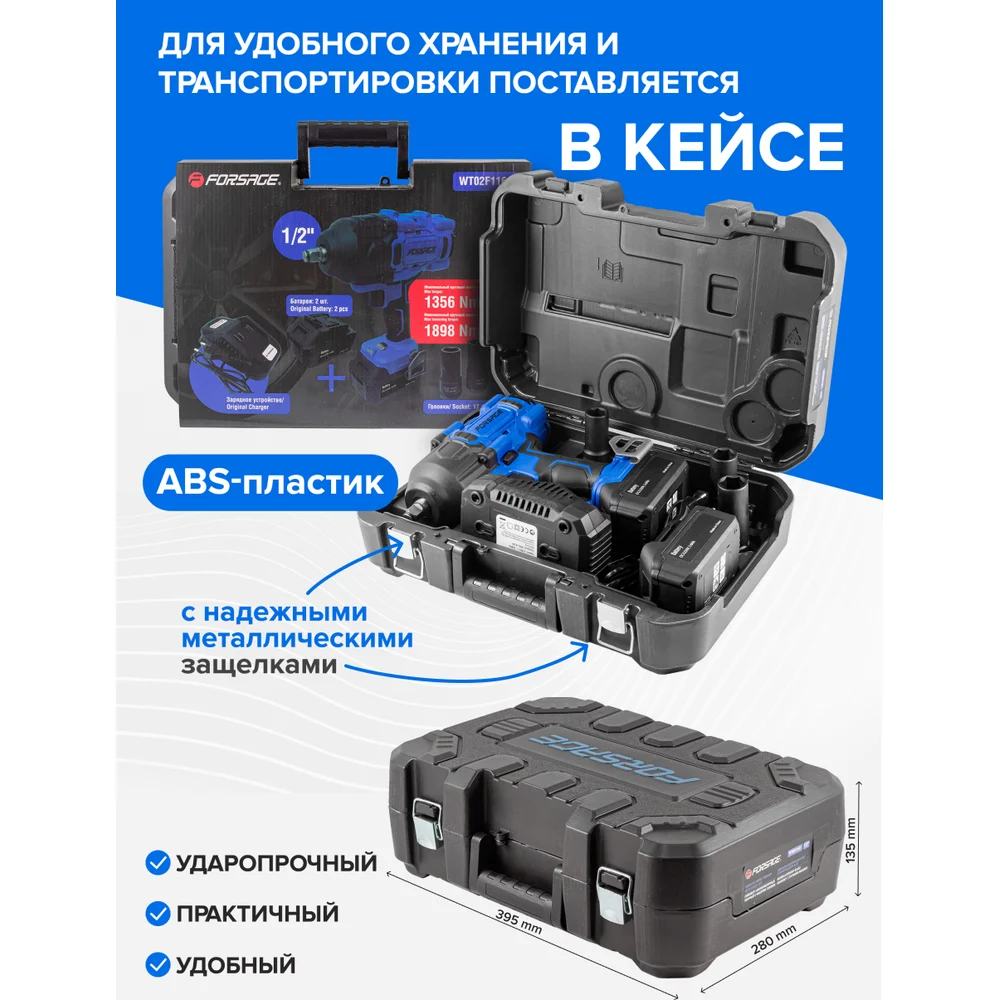 Купить Гайковерт ударный аккумуляторный Forsage 1/2" + набор головок, в кейсе F-WT02F1161(51694) по лучшей цене с доставкой - интернет магазин №1 в России
