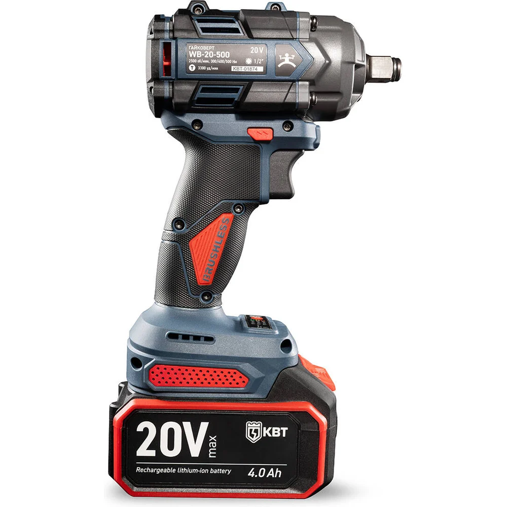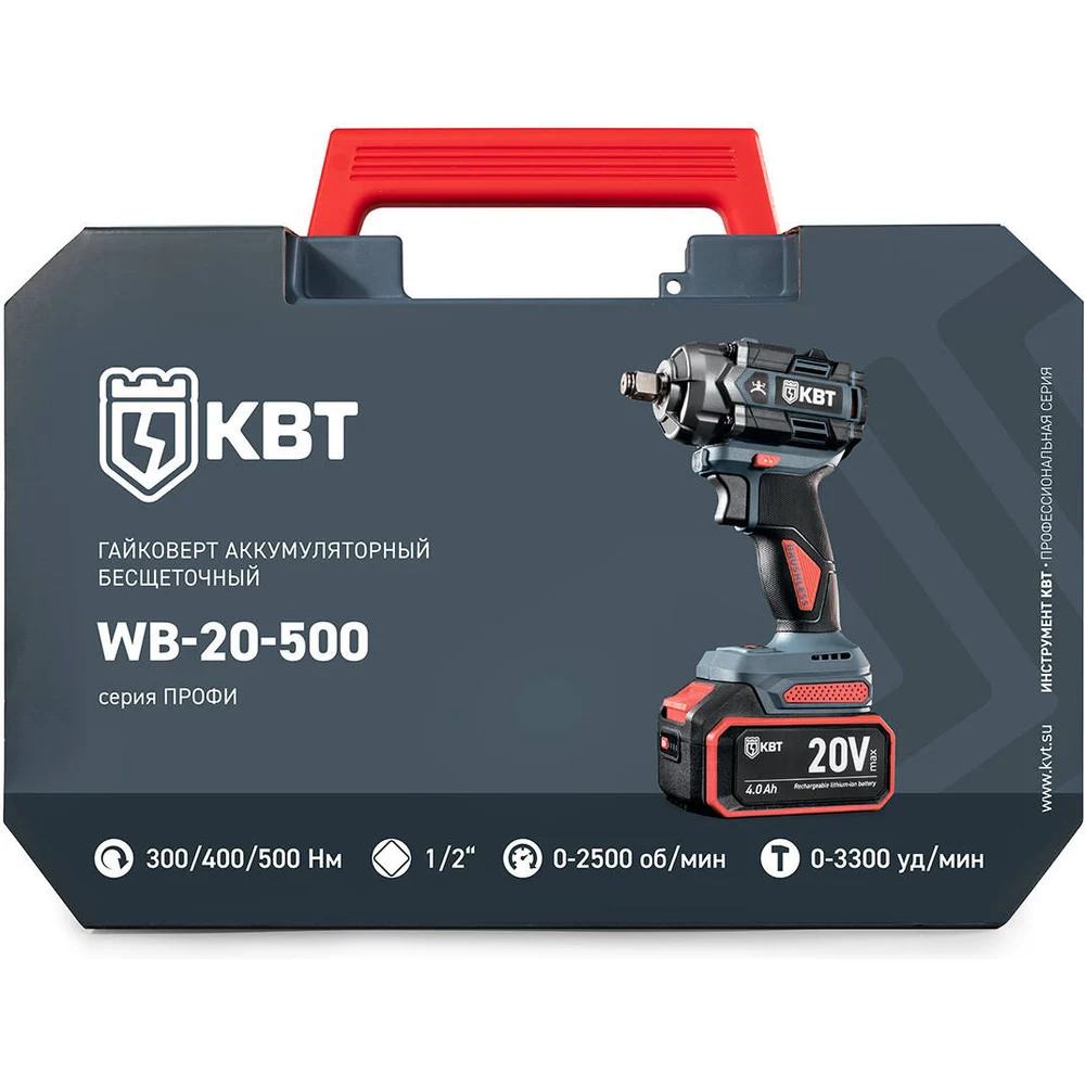 Купить Гайковерт ударный КВТ WB-20-500 серия ПРОФИ аккумуляторный бесщеточный 102594 по лучшей цене с доставкой - интернет магазин №1 в России