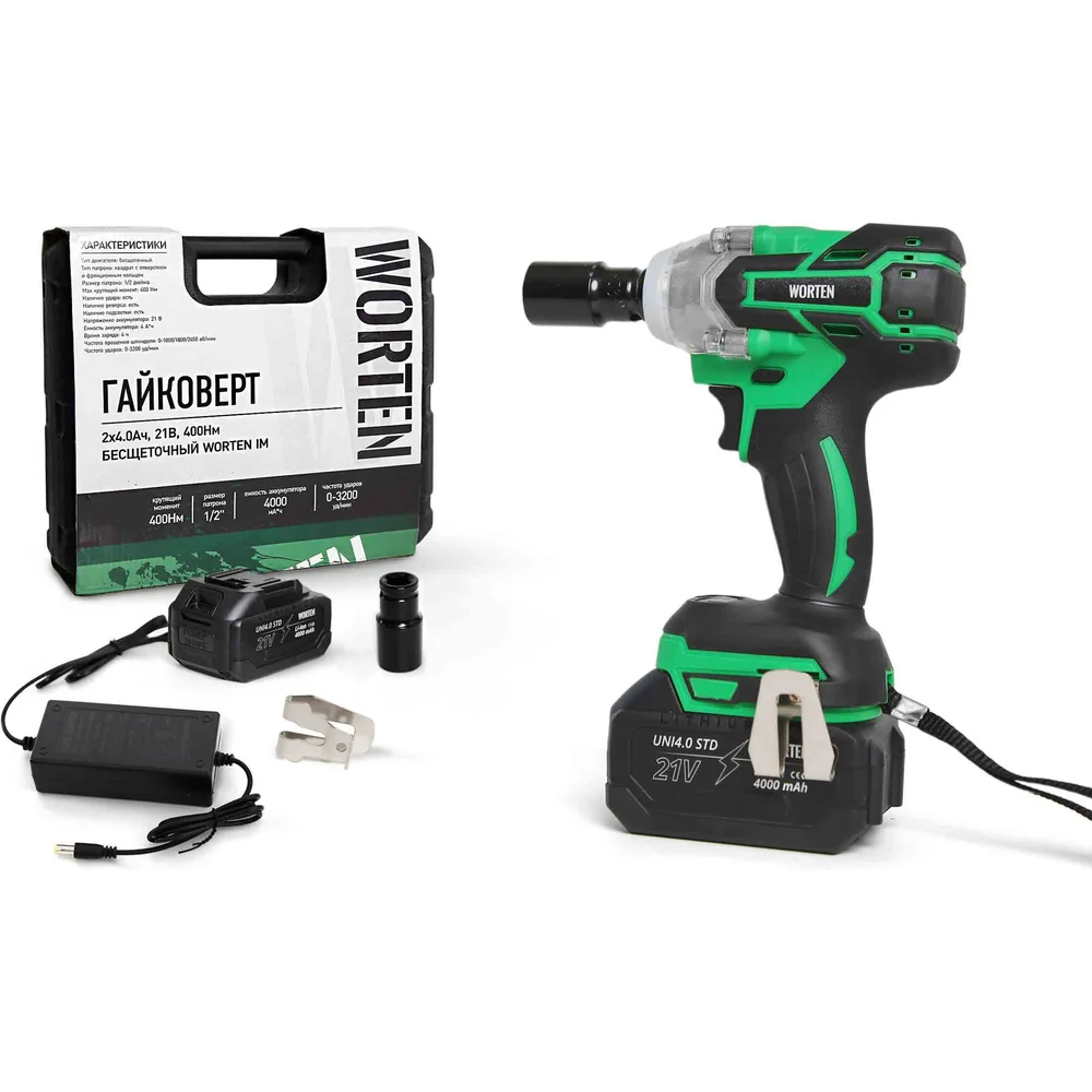 Гайковерт WORTEN 1х4.0Ач, 21В 400Нм бесщеточный IM КА-90000578