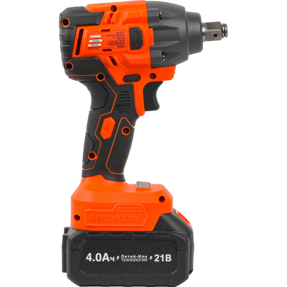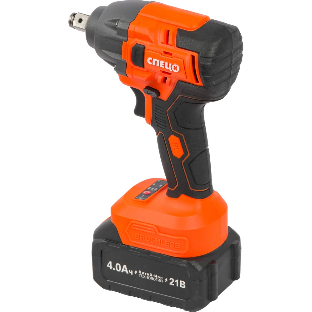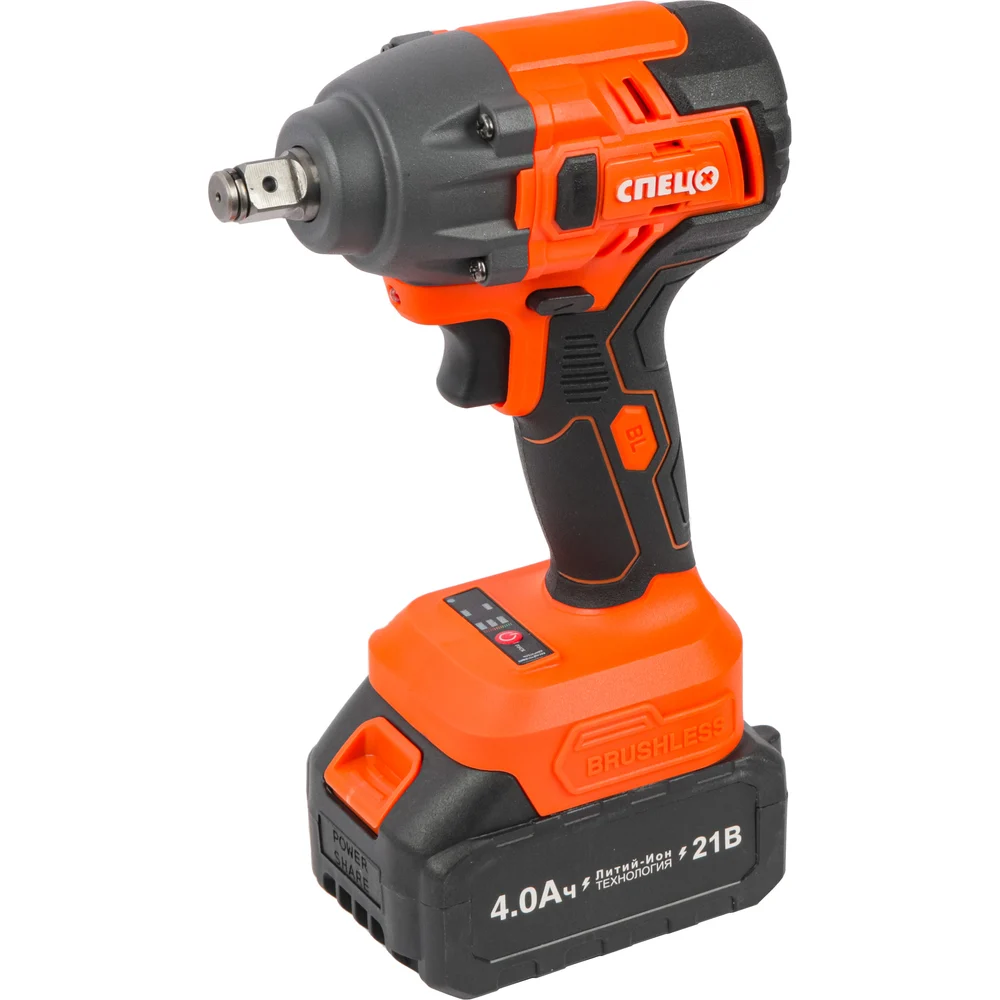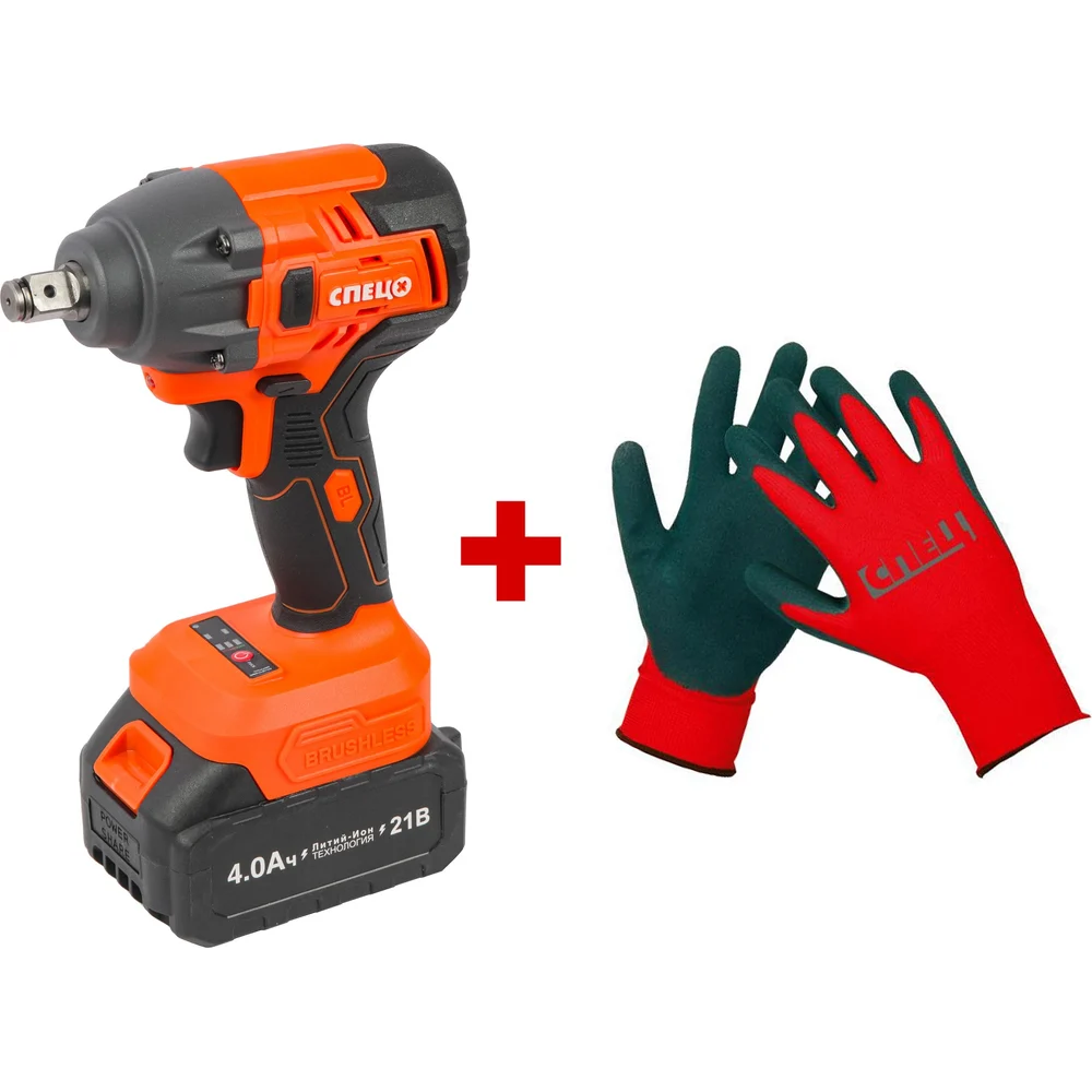 Набор Гайковерт ударный Спец БАГ-21-Б, (бесщеточный двигатель),21В,1аккум *4,0Ач,скорость0-1400/0-2400 об/ми, частота ударов 0-2200/0-3200уд/мин,макс крут момент 350Нм, подсведка,зарядка 4ч,кейс, цв.кор + Перчатки СПЕЦ-4133/ВС-136-0272-01