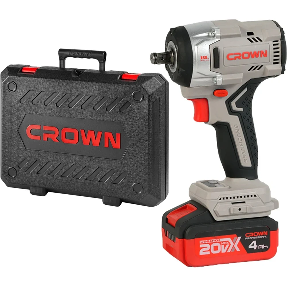 Набор инструмента CROWN гайковерт аккумуляторный (кейс), дрель-шупруповерт, универсальный аккумулятор 20VMax CT22062HX-4 BMC + CT21075HMX