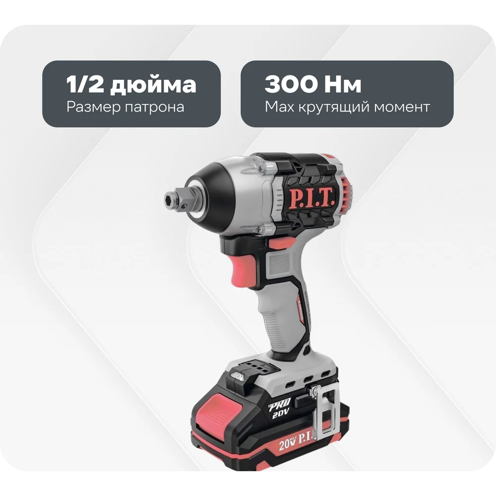 Купить Ударный бесщеточный аккумуляторный гайковерт P.I.T. 20 В, 300 Нм, квадрат 1/2" и шестигран, 2 Ач, ЗУ, кейс PIW20H-300B/1 по лучшей цене с доставкой - интернет магазин №1 в России