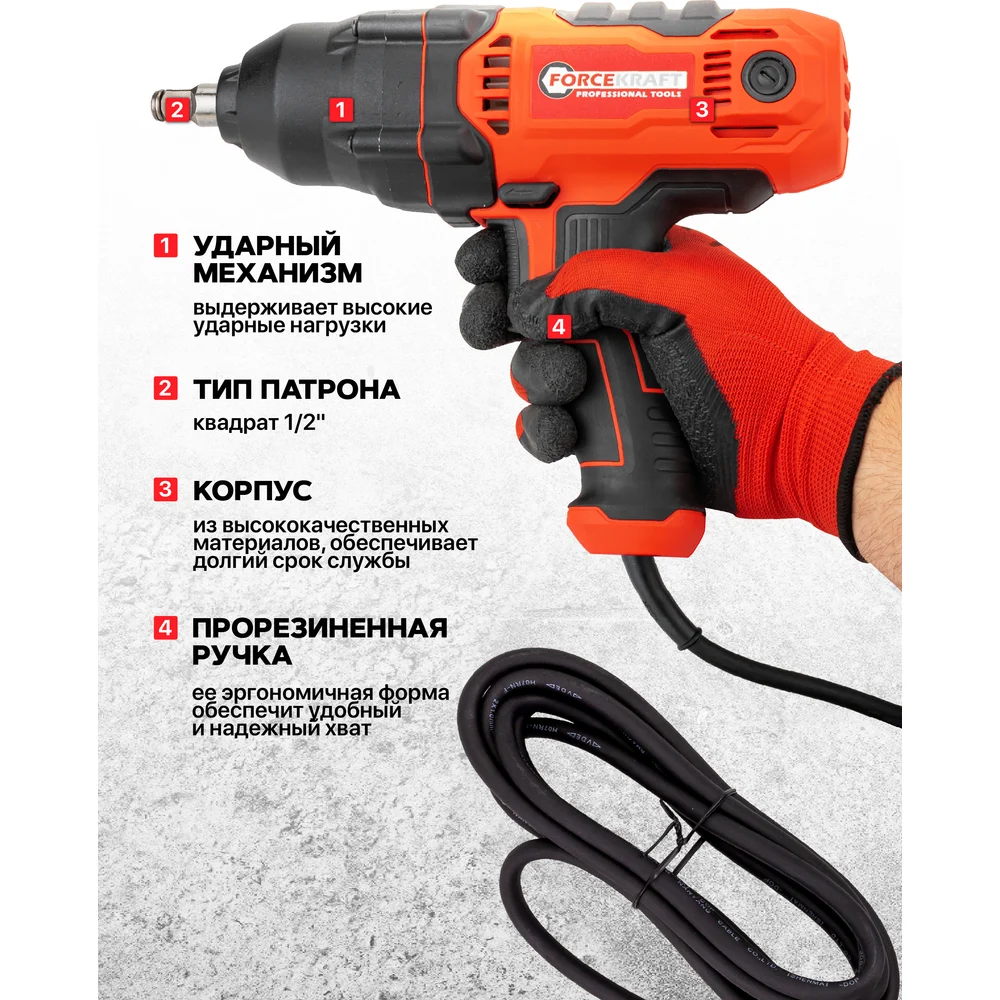 Купить Гайковерт ударный электрический 1/2 710Вт Forcekraft FK-P1B-GW5-500(65924) по лучшей цене с доставкой - интернет магазин №1 в России