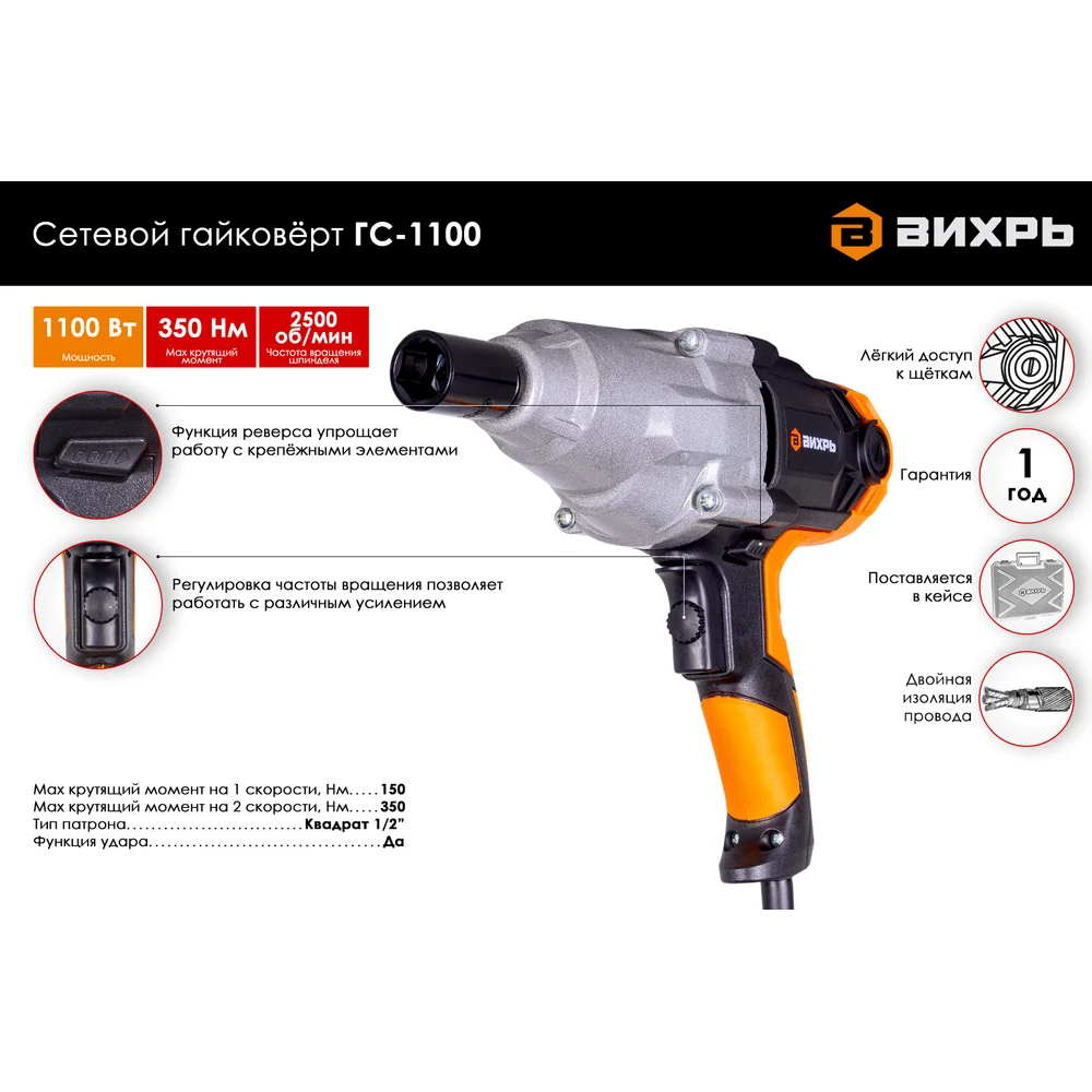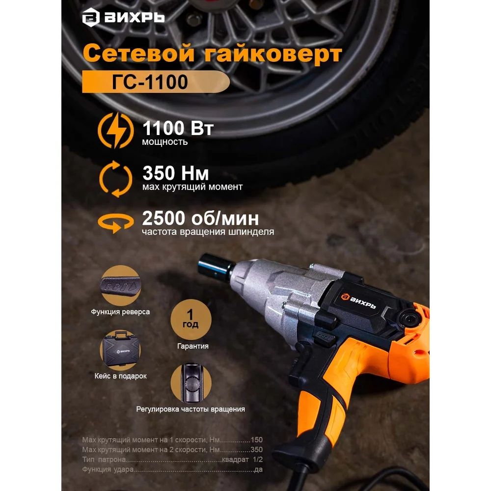 Купить Сетевой гайковерт Вихрь ГС-1100 72/24/1 по лучшей цене с доставкой - интернет магазин №1 в России