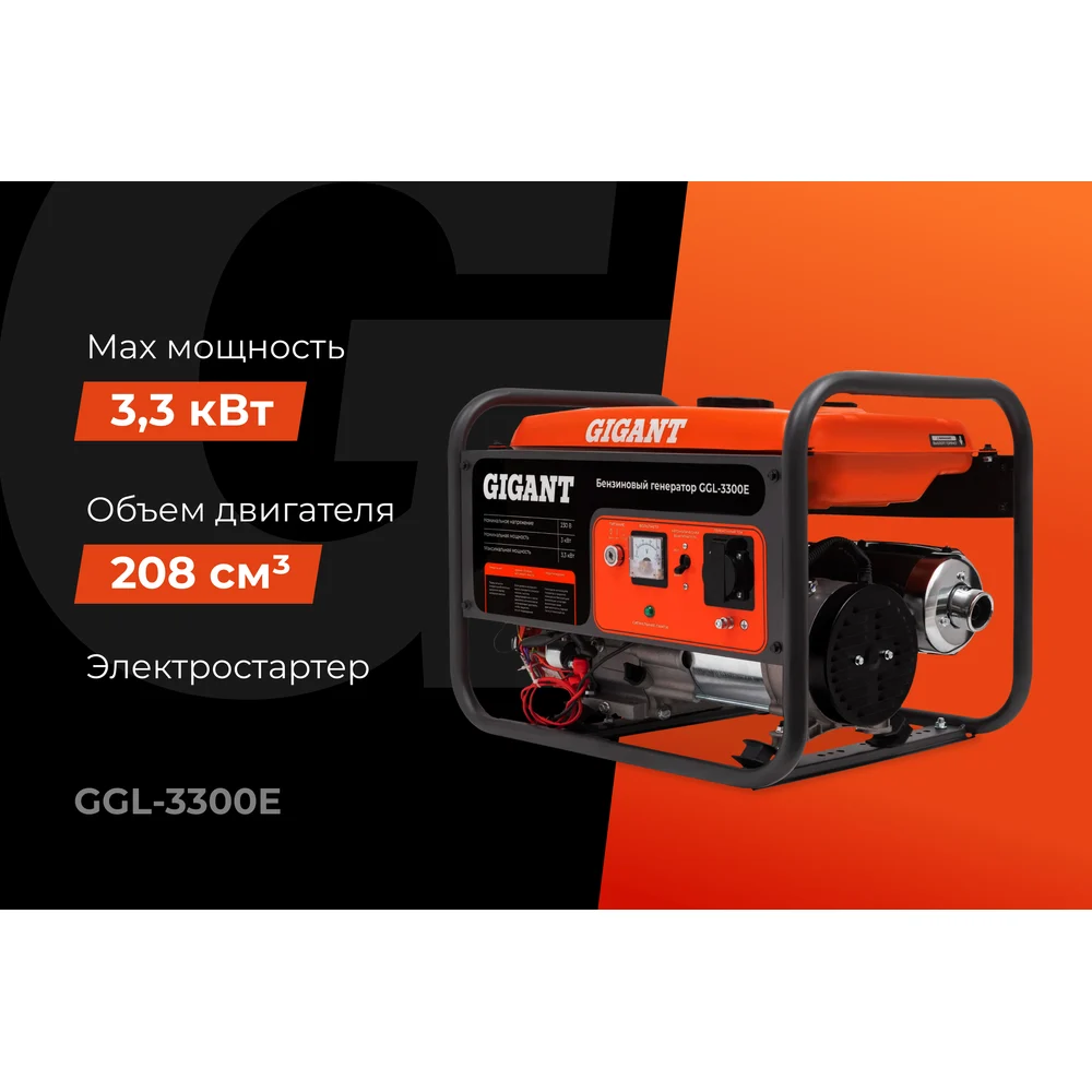 Купить Бензиновый генератор Gigant (3,3 кВт; эл.стартер; медная обмотка) GGL-3300E по лучшей цене с доставкой - интернет магазин №1 в России