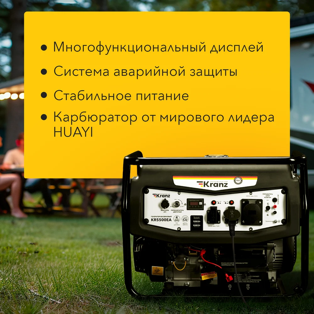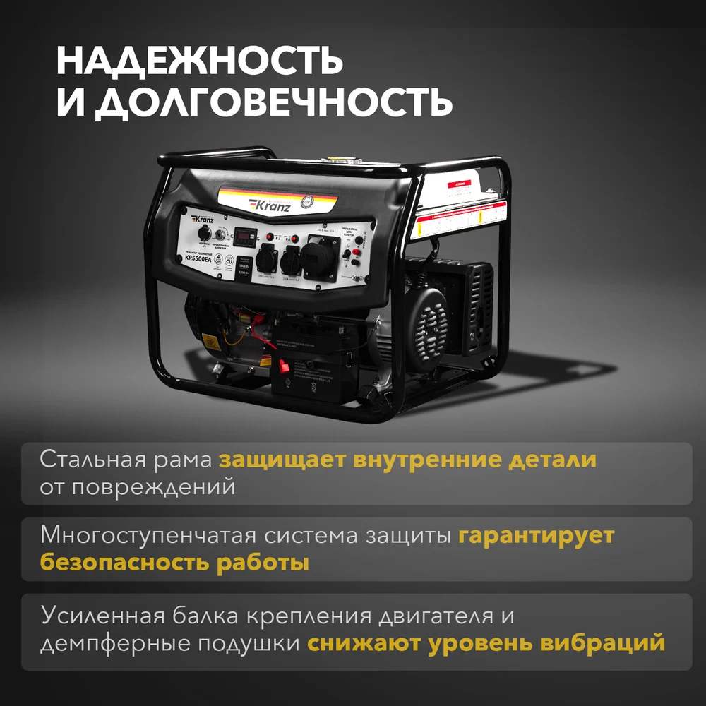 Купить Бензиновый генератор KRANZ KR5500EA, 5,5 кВт, 230 В, 25 л, коннектор автоматики, электростартер KR-16-1135 по лучшей цене с доставкой - интернет магазин №1 в России