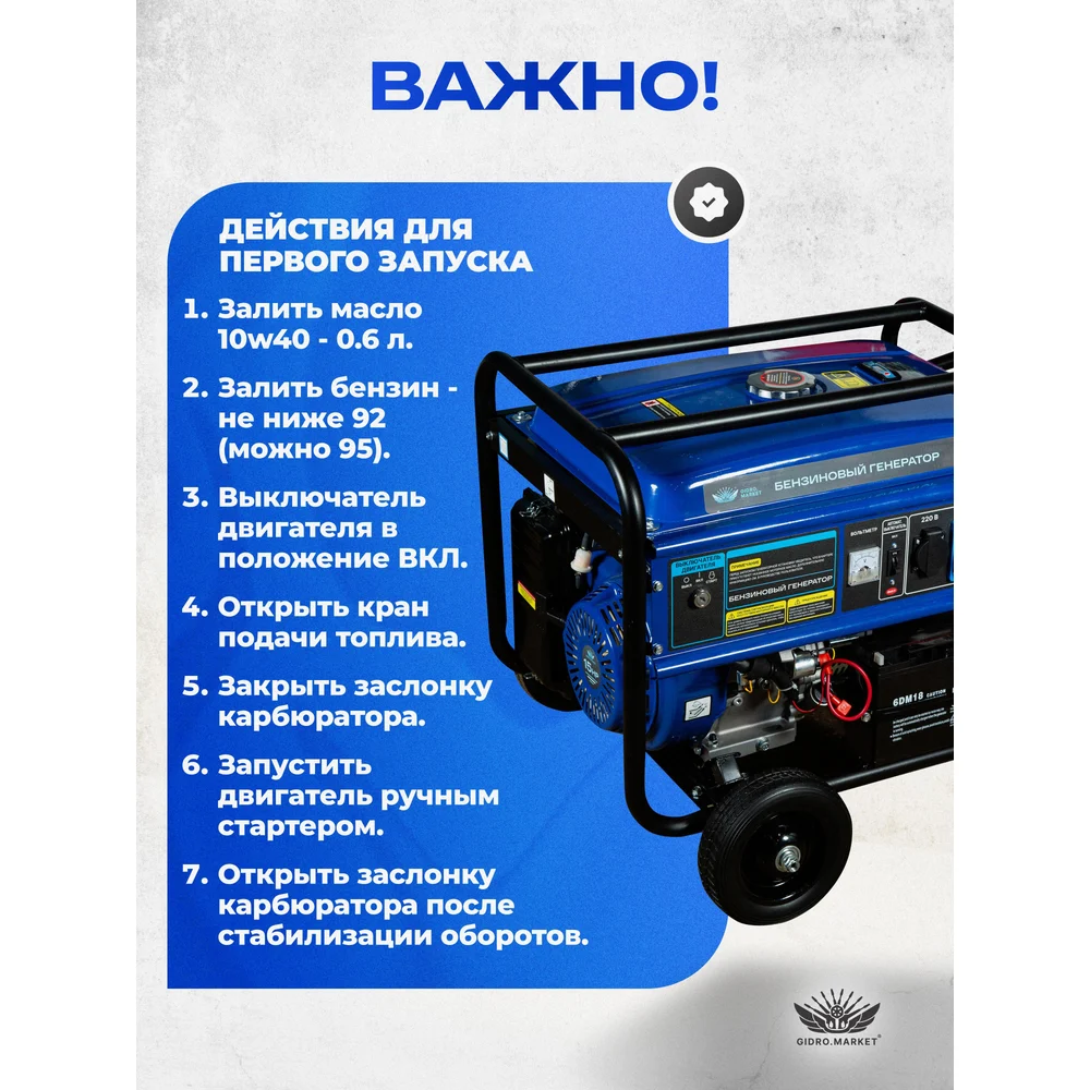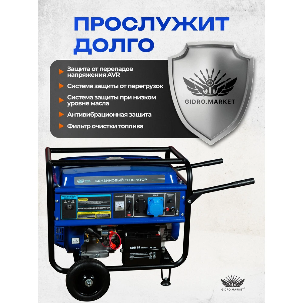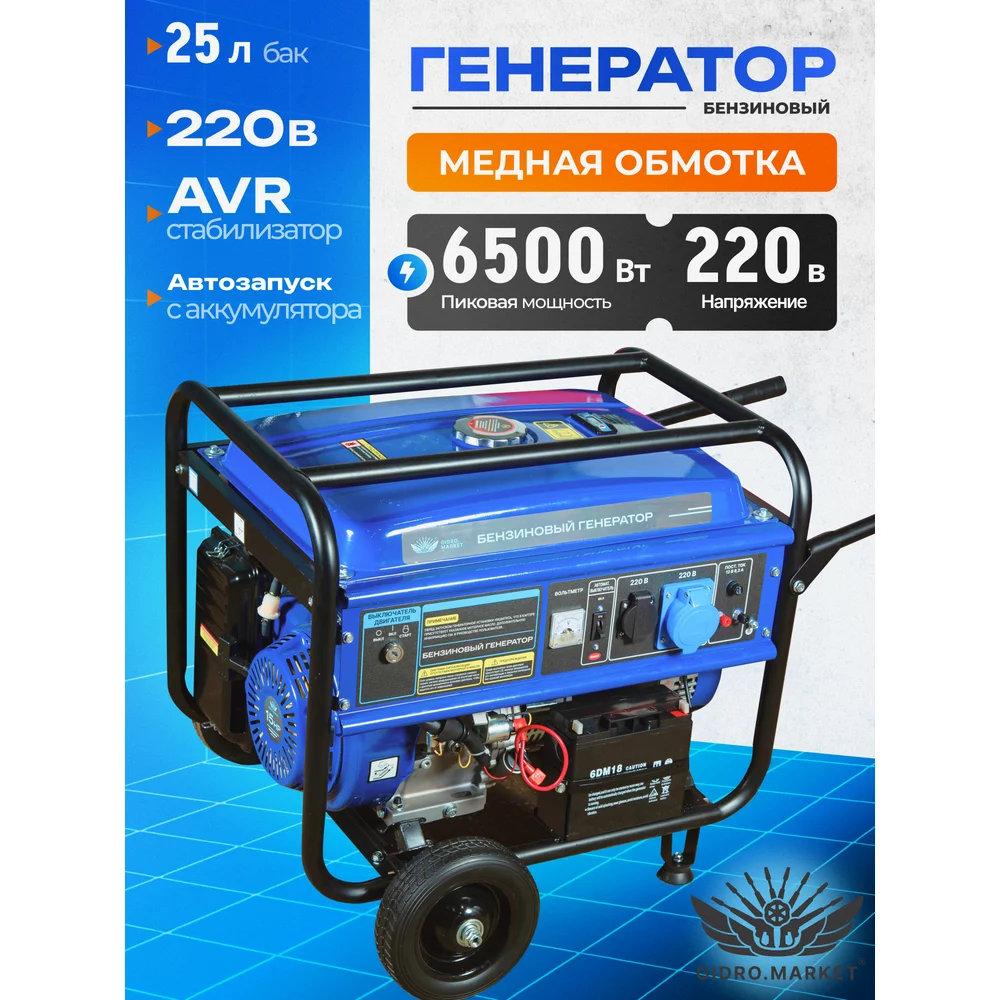 Купить Бензиновый генератор ООО ТД Гидромаркет 6,5 квт медная обмотка. на колёсах GMGen-6,5-220*2 по лучшей цене с доставкой - интернет магазин №1 в России