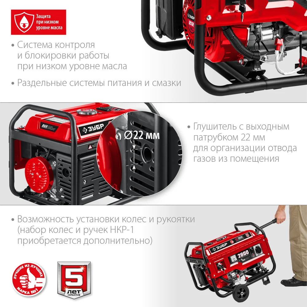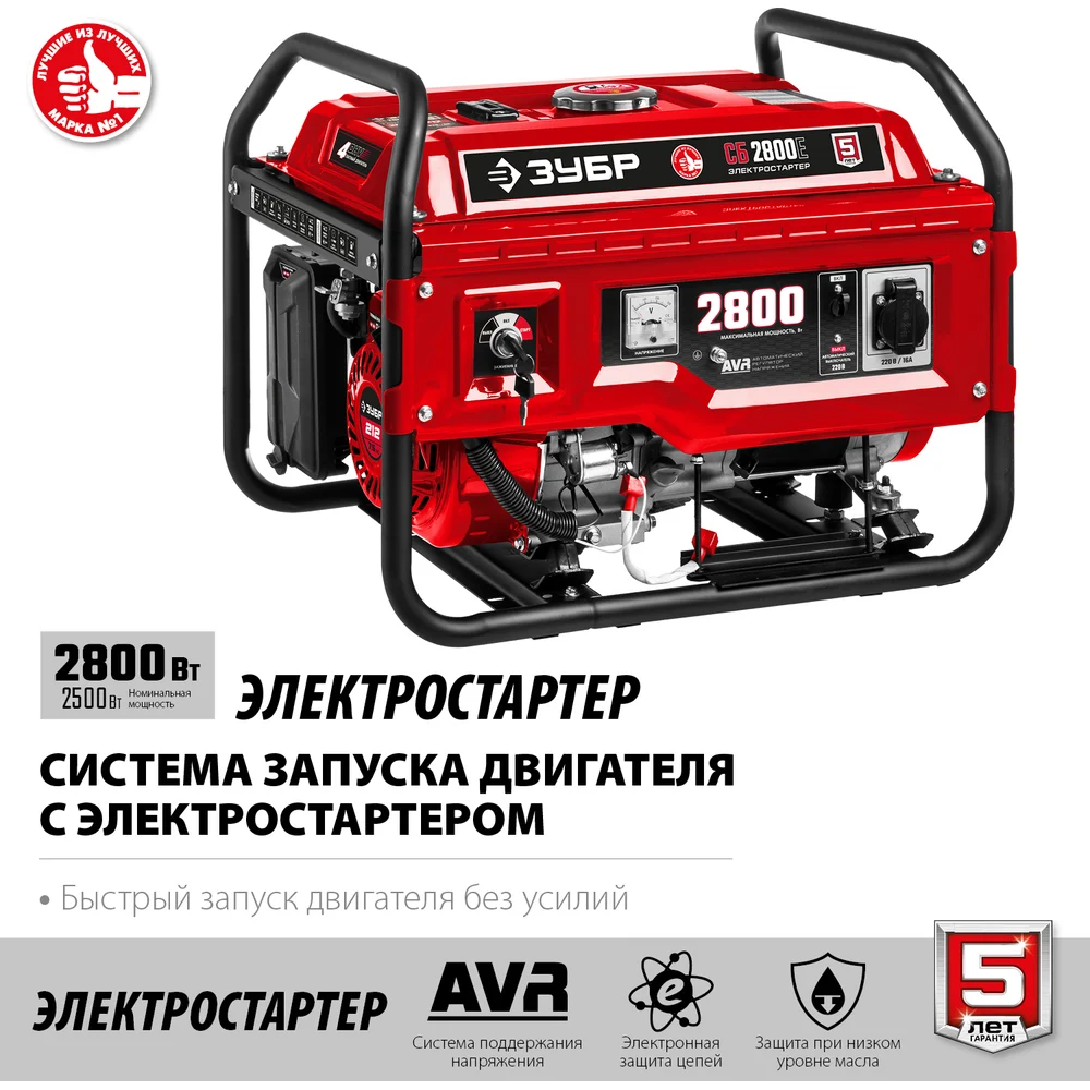 Купить Бензиновый генератор с электростартером ЗУБР 2800 Вт, СБ-2800Е по лучшей цене с доставкой - интернет магазин №1 в России