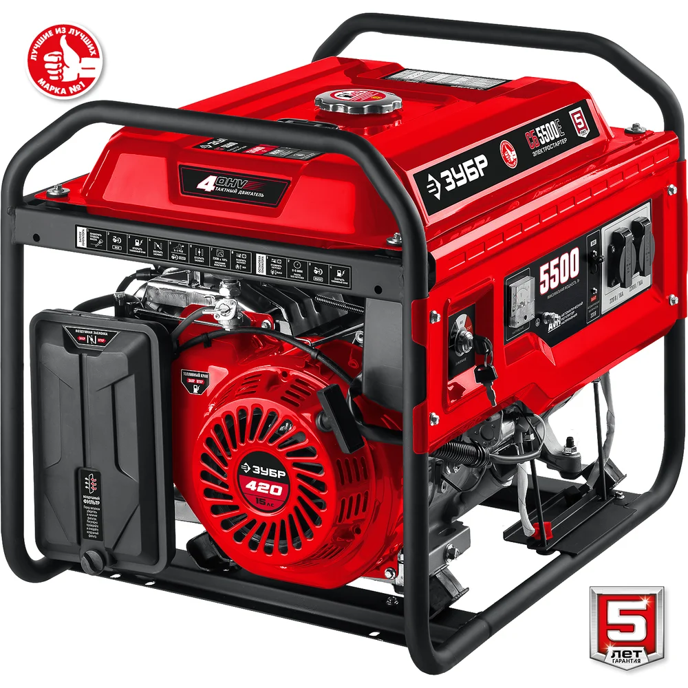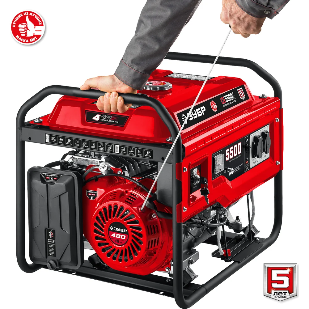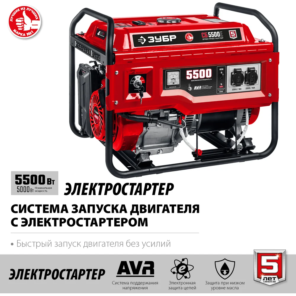 Купить Бензиновый генератор с электростартером ЗУБР 5500 Вт СБ-5500Е по лучшей цене с доставкой - интернет магазин №1 в России