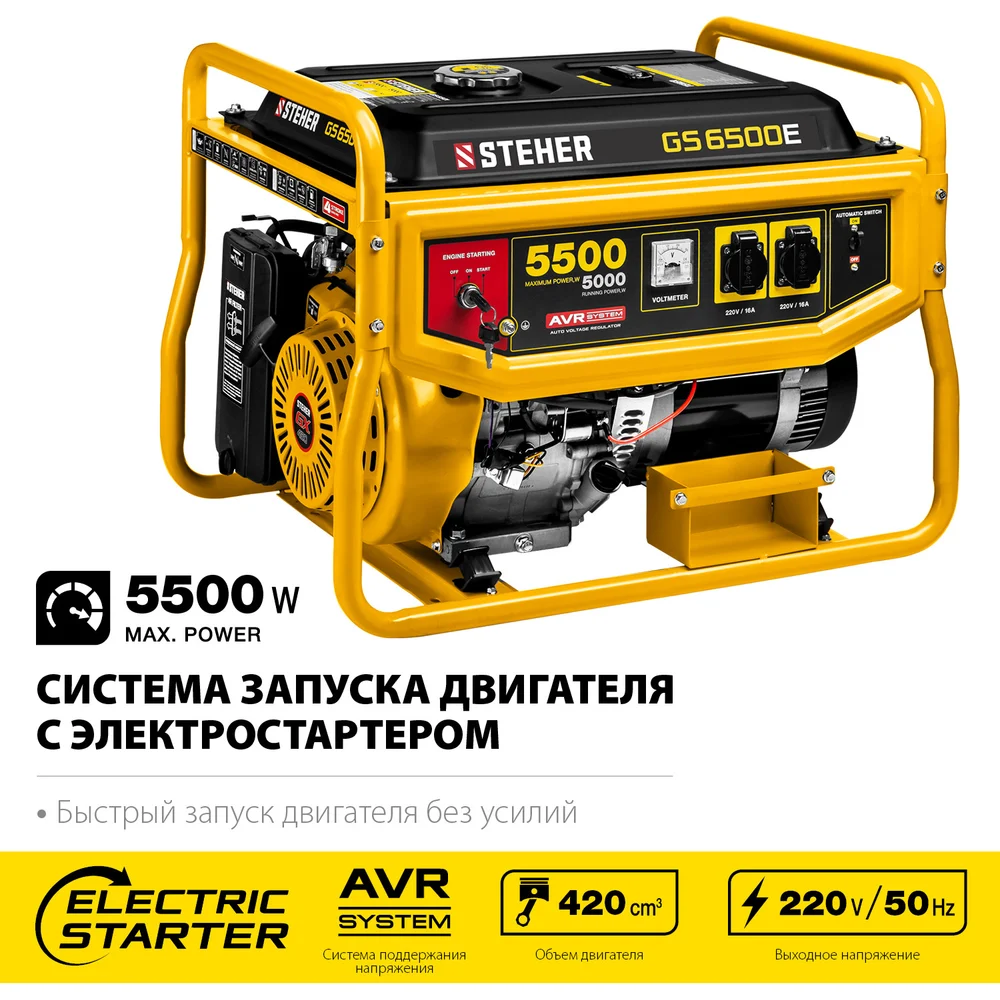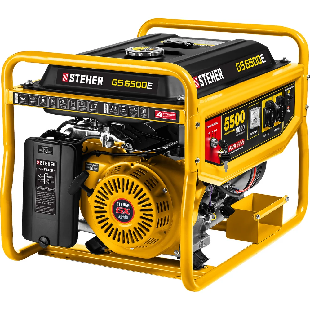 Купить Бензиновый генератор STEHER с электростартером GS-6500Е по лучшей цене с доставкой - интернет магазин №1 в России