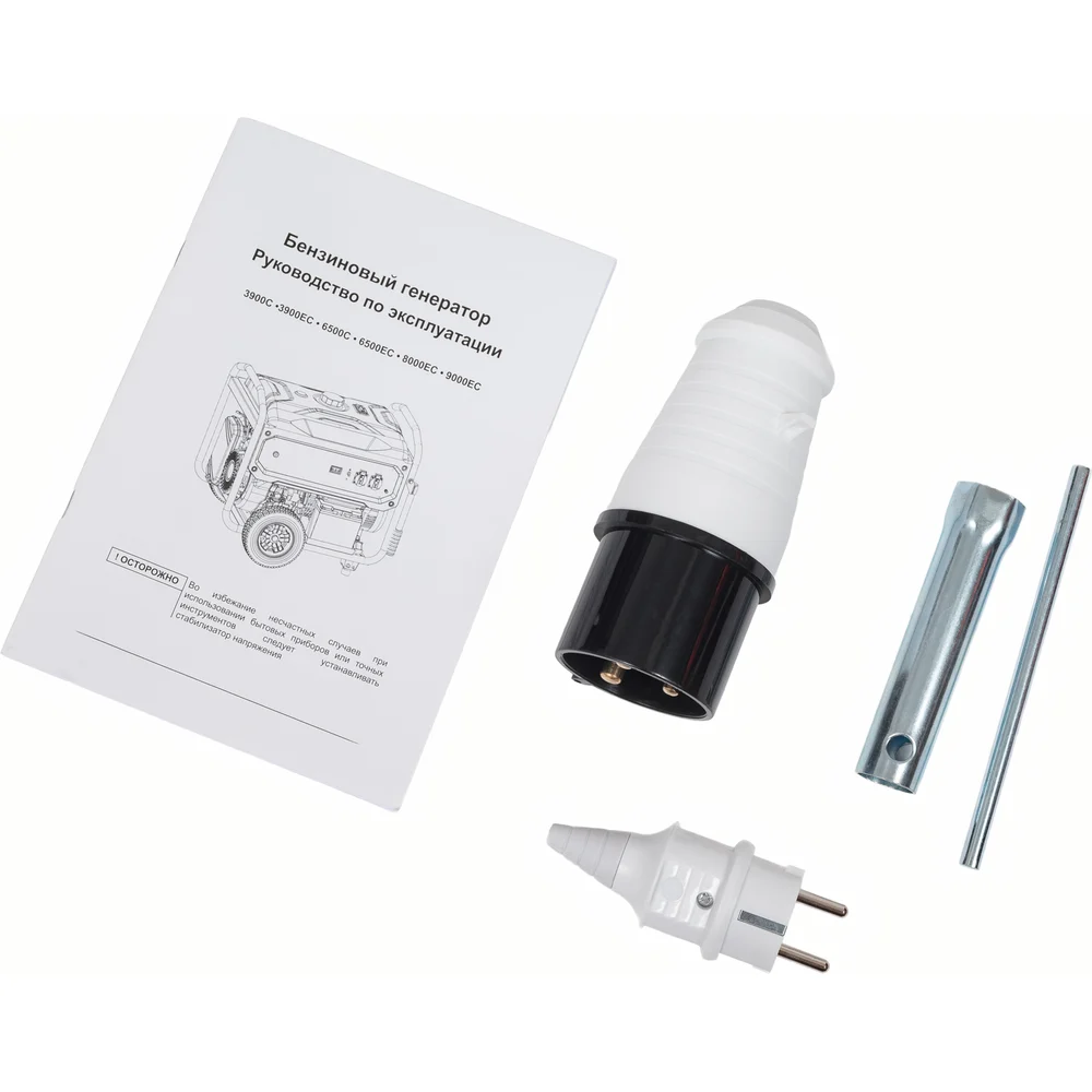 Комплектация Бензиновый генератор - 1 шт; EU вилка 16A*1+32A*1 - 2 шт; EU вилка 16A - 2 шт; Свечной ключ - 1 шт; Инструкция - 1 шт; Колесо 24,13 см - 2 шт; Ось - 2 шт; Плоская шайба - 2 шт; Пружинная шайба - 2 шт; Шестигранная гайка - 2 шт; Ручка - 2 шт; Шестигранный фланцевый болт- 2 шт; Нейлоновая прокладка - 2 шт; Стопорная гайка - 2 шт; Держатель - 2 шт; Подставка-демпфер - 2 шт; Шестигранная стопорная гайка - 6 шт; Шестигранный фланцевый болт - 4 шт