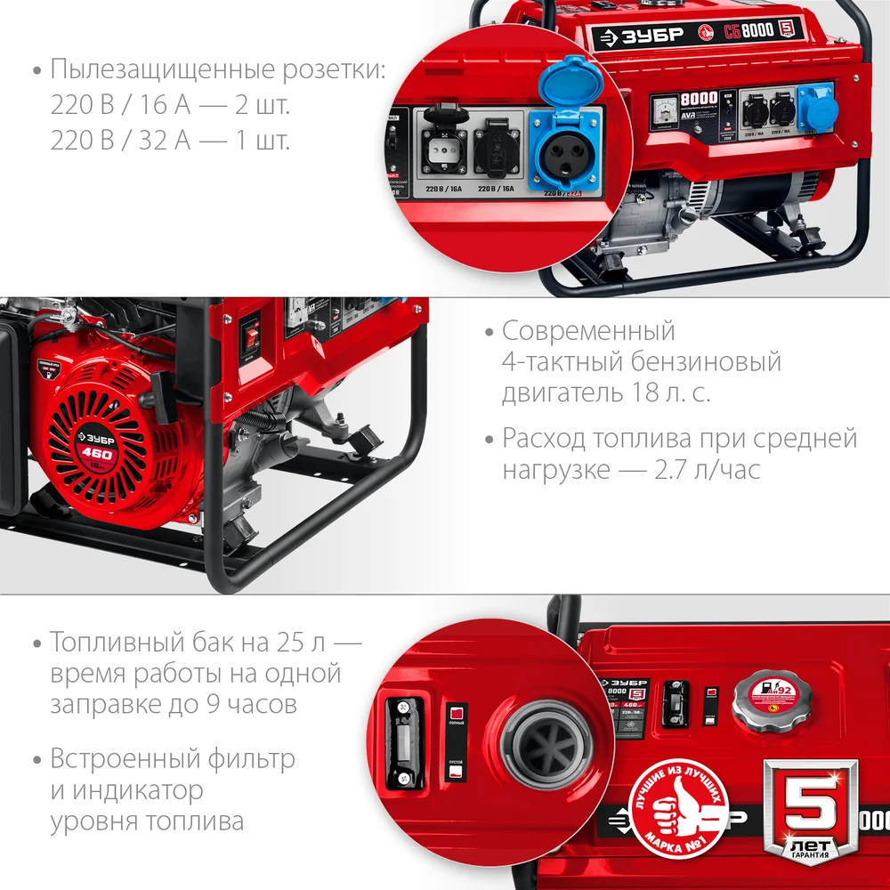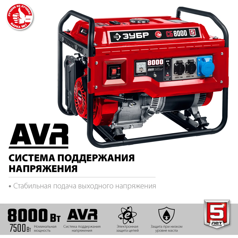 Купить Бензиновый генератор ЗУБР 8000 Вт СБ-8000 по лучшей цене с доставкой - интернет магазин №1 в России