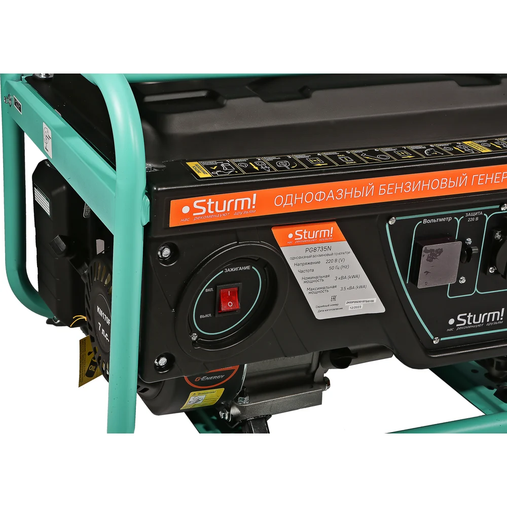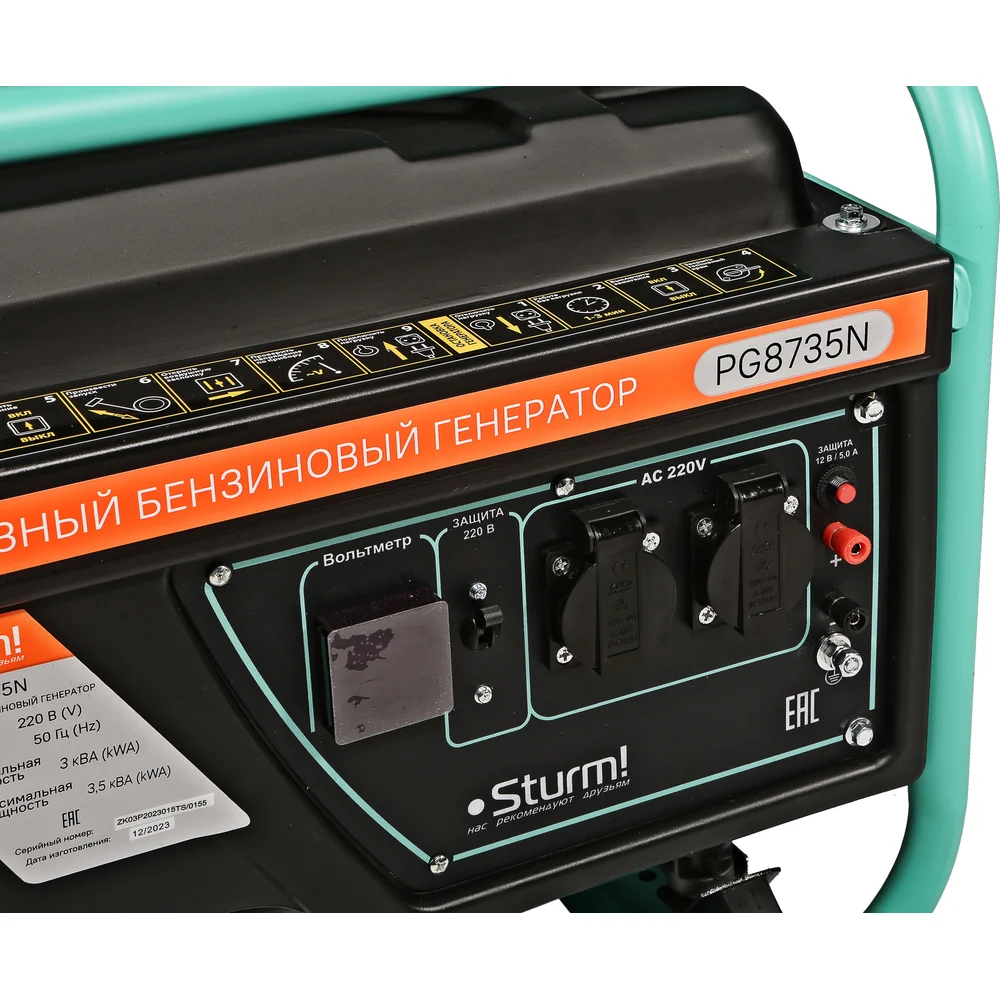 Бензогенератор Sturm 3500 ВА, AVR (Авто. Рег.Напр.), ручн старт, 42 кг, бак 15л PG8735N