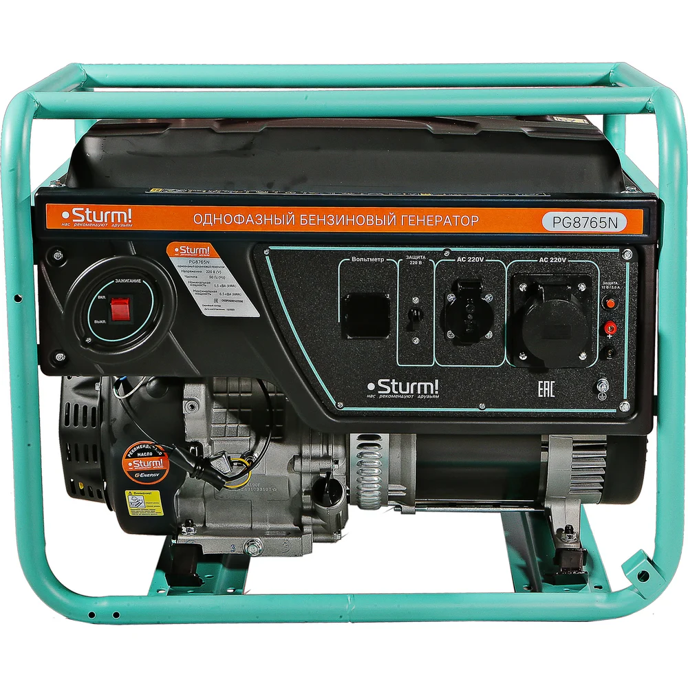 Купить Бензогенератор Sturm 6500 ВА, AVR (Авто. Рег.Напр.), ручной старт, 73 кг, бак 25 л PG8765N по лучшей цене с доставкой - интернет магазин №1 в России