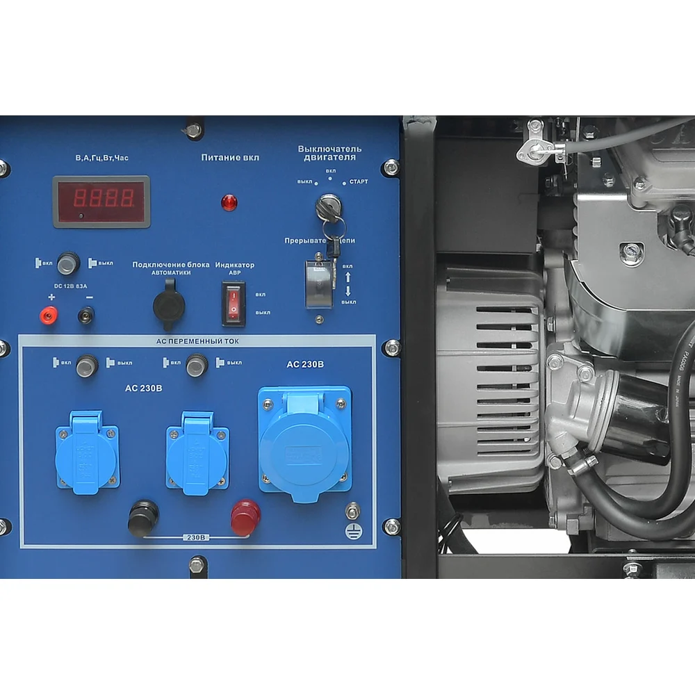 Комплектация Автоматический выключатель от перегрузок и короткого замыкания; Шкала уровня топлива; Счетчик моточасов; Вольтметр; Аккумулятор 36 Ah; Розетки: 220В – 16А, 2 шт.(европейского стандарта) и 220В – 32А, 1 шт.( промышленная), что позволяет подключать разные электроинструменты; Выход на 12В для зарядки аккумулятора (АКБ); Набор проводов для встроенного зарядного устройства; Вилка, для подключения общей нагрузки, 2 шт; Свечной ключ; Колеса и складывающиеся ручки; Инструкция по эксплуатации и гарантийный талон производителя