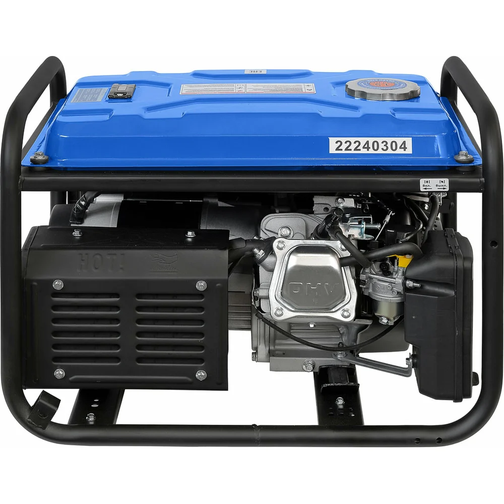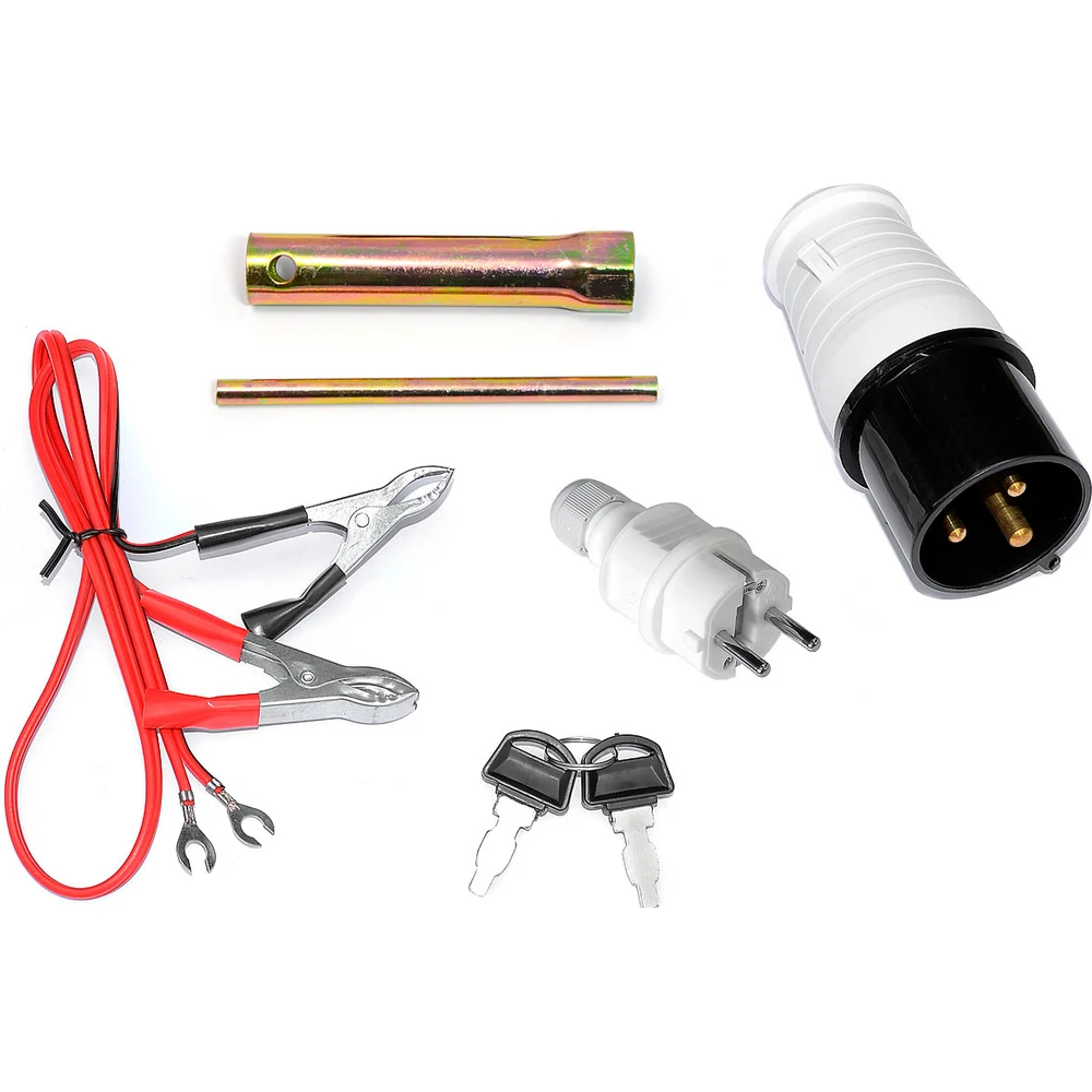 Комплектация Генератор; АКБ; Вилка, для подключения общей нагрузки, 2 шт; Свечной ключ; Клеммы; Инструкция по эксплуатации; Гарантийный талон