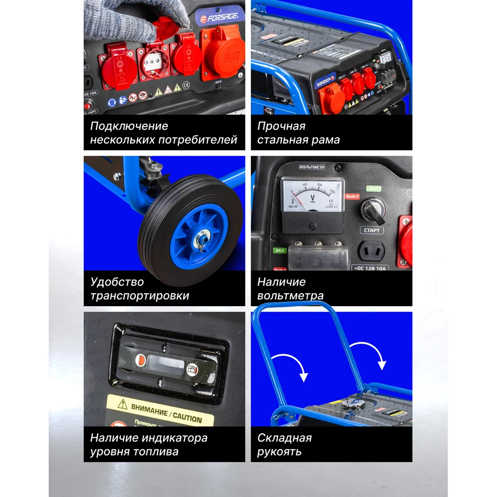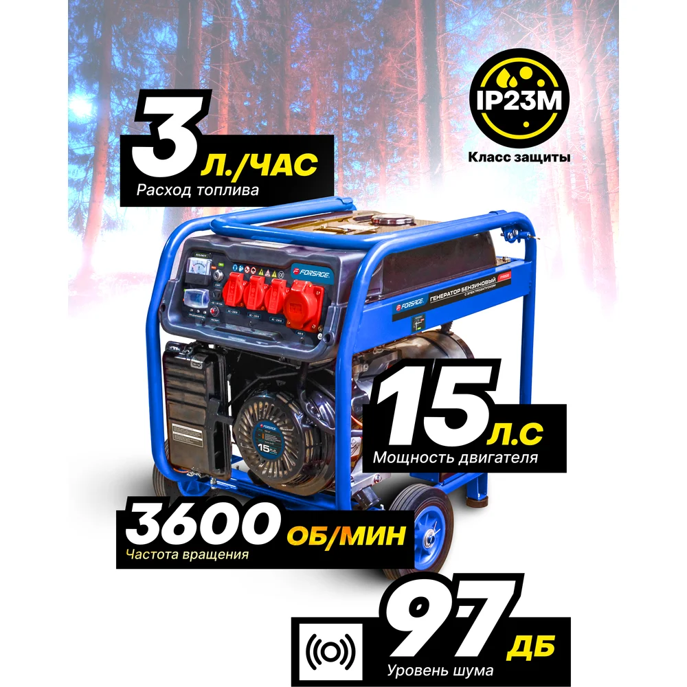 Генератор автономный бензиновый Forsage 2300/7000Вт ном., 3 роз. 220В~50Гц+роз.400В, двиг.15л.с., бак для бензина 25л, бензин АИ-92, время раб. 8ч, шум 97дБ F-FY8500(57992)