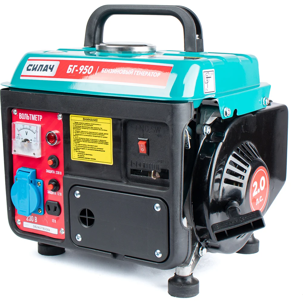 Купить Генератор бензиновый СИЛАЧ БГ-950, 0.8кВт, бак 3.8л, 17кг, ручной стартер, 2Т/АИ-92 (1/24) 023053 по лучшей цене с доставкой - интернет магазин №1 в России