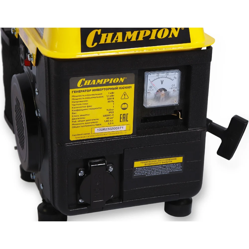 Купить Генератор Champion 1/1.1кВт 1.86 л.с., 2Т, 2.2 л, 12В, 11.8 кг IGG1001 по лучшей цене с доставкой - интернет магазин №1 в России