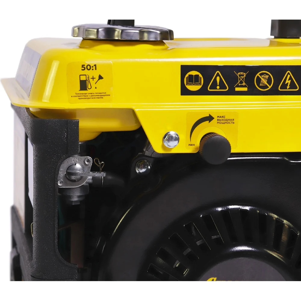 Комплектация Генератор - 1 шт; Крышка топливного бака - 1 шт; Рукоятка траспортировочная с крепежом - 1 шт; Отвёртка - 1 шт; Вилка кабельная - 1 шт; Кабель с зажимами для зарядки; Внешнего аккумулятора - 1 шт; Руководство по эксплуатации - 1 шт; Упаковка