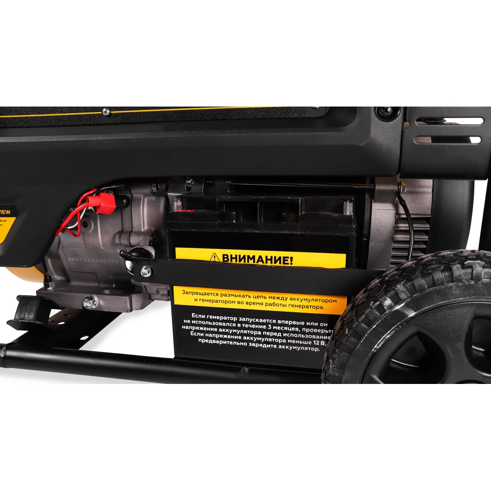 Комплектация Генератор; Ключ свечной; Вилка кабельная 2 шт; Руководство по эксплуатации; Амортизатор рамы с крепежом; Рукоятка транспортировочная с крепежом  2 шт; Колесо транспортировочное с крепежом 2 шт; Опора рамы с крепежом 2 шт; Ключ замка зажигания - 2 шт; Аккумулятор - 1 шт