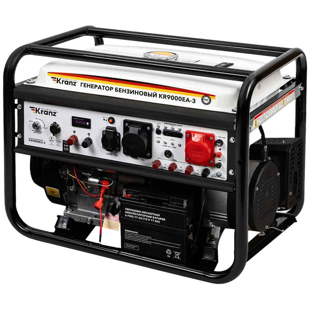 Купить Бензиновый генератор KRANZ KR9000EA-3 9кВт 230В/380В 25л коннектор автоматики электростартер KR-16-1140 по лучшей цене с доставкой - интернет магазин №1 в России