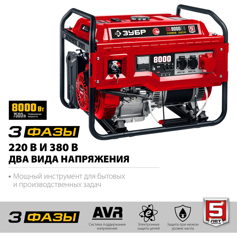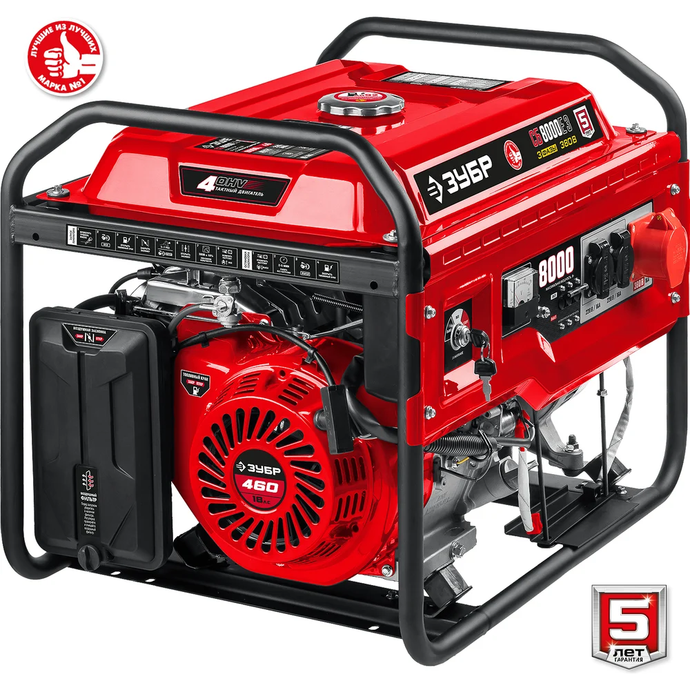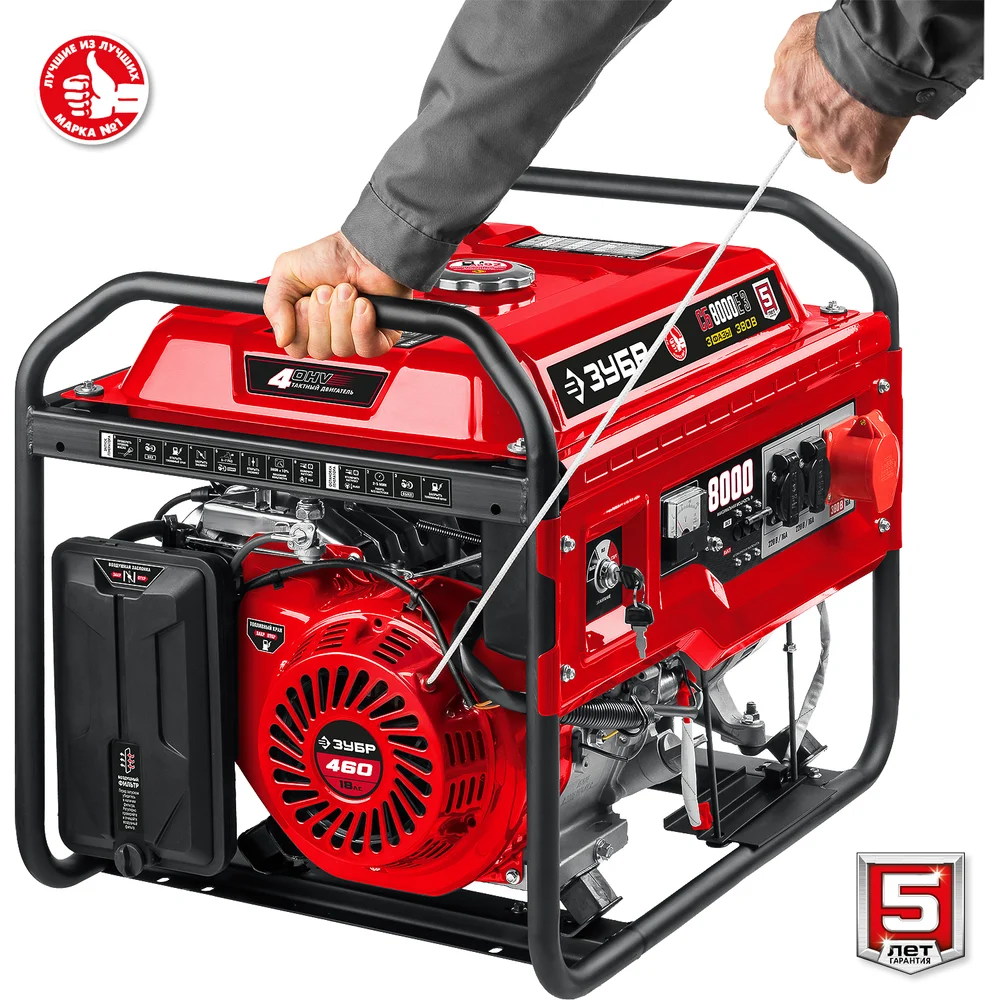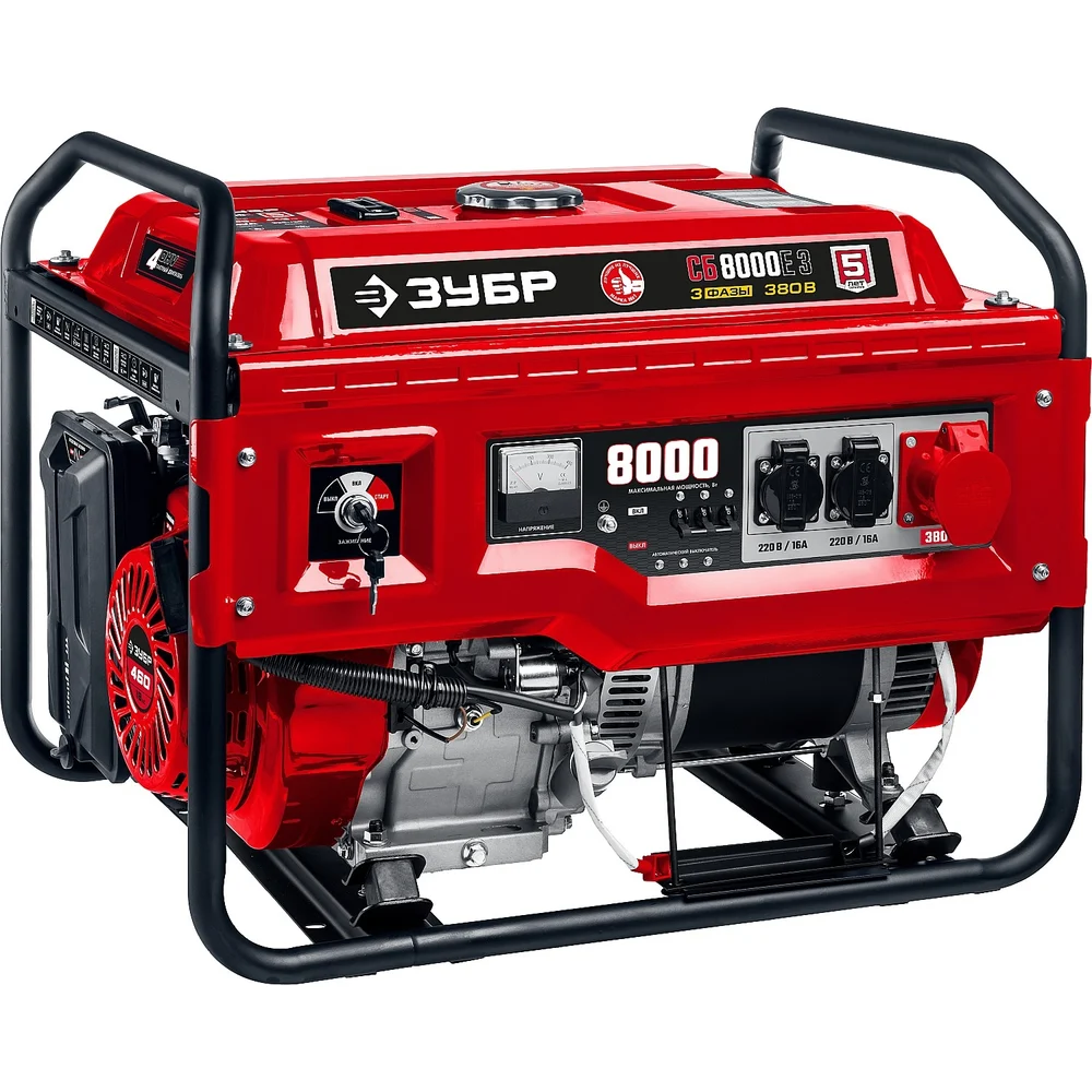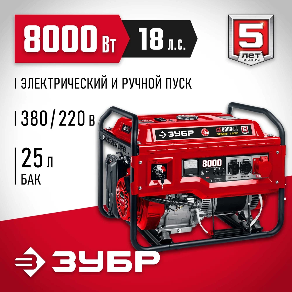 Купить Бензиновый генератор с электростартером ЗУБР 8000 Вт СБ-8000Е-3 по лучшей цене с доставкой - интернет магазин №1 в России