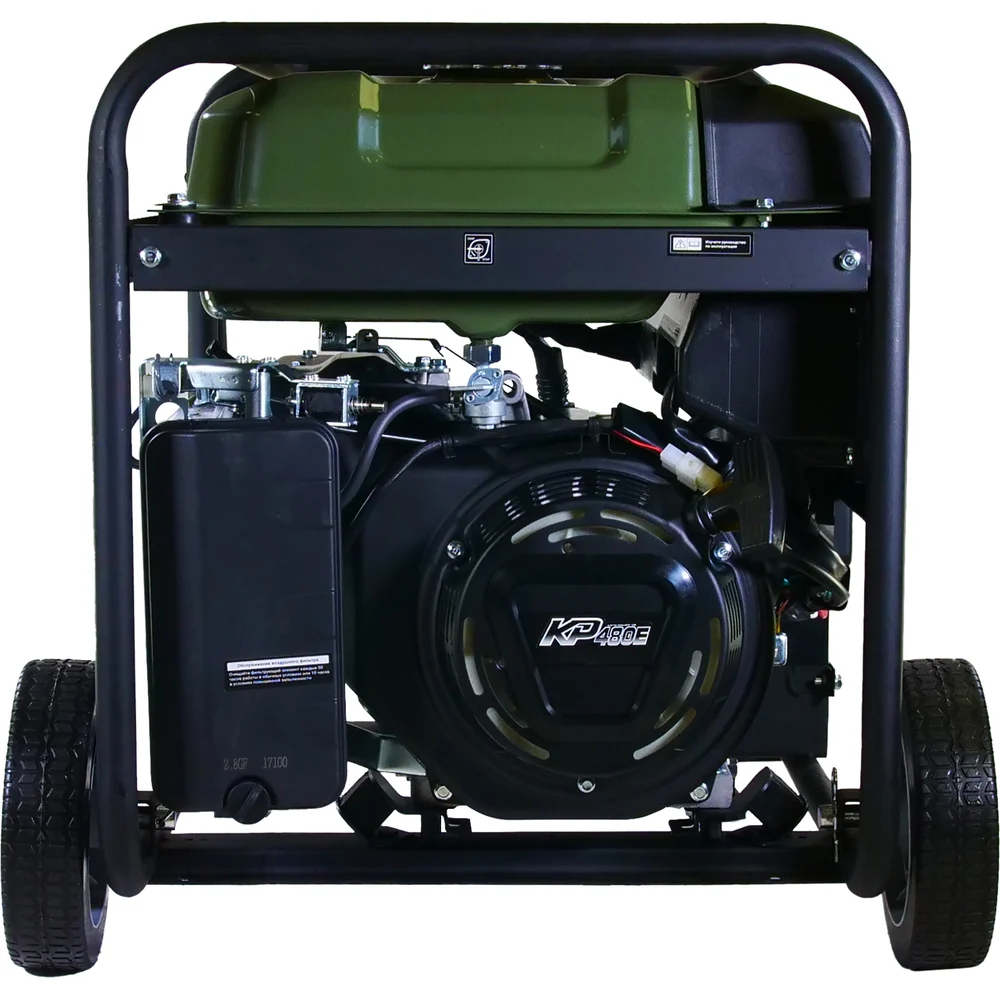 Комплектация Генератор; Колеса; Ручки; Аккумулятор; Набор инструментов; Воронка; Вилки 2 шт. ( обычная и силовая на 380 В); Инструкция по эксплуатации