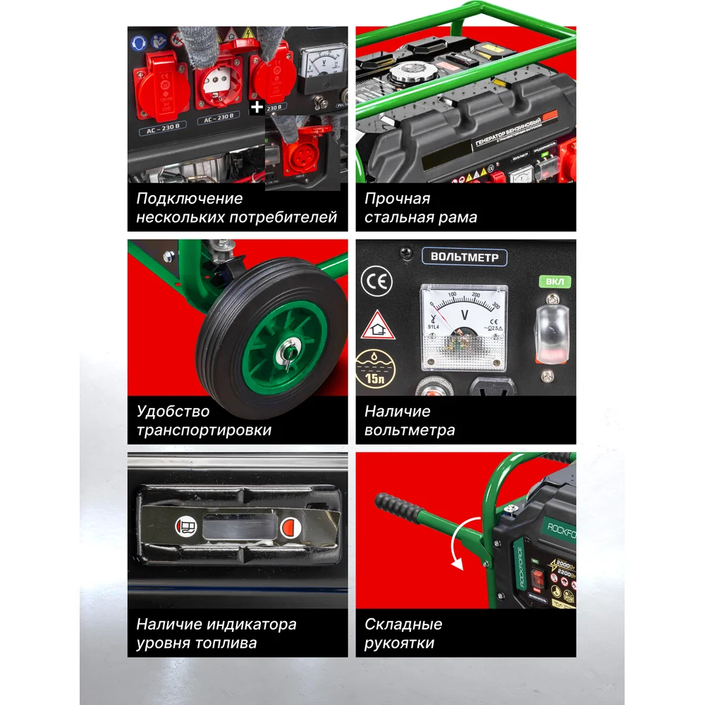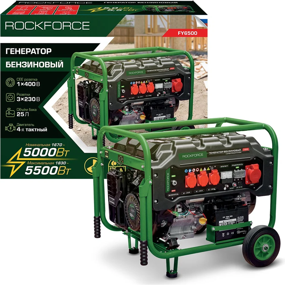 Купить Генератор бензиновый с электрозапуском Rockforce 25л, 1670-5000Вт, 13л.с RF-FY6500(60803) по лучшей цене с доставкой - интернет магазин №1 в России