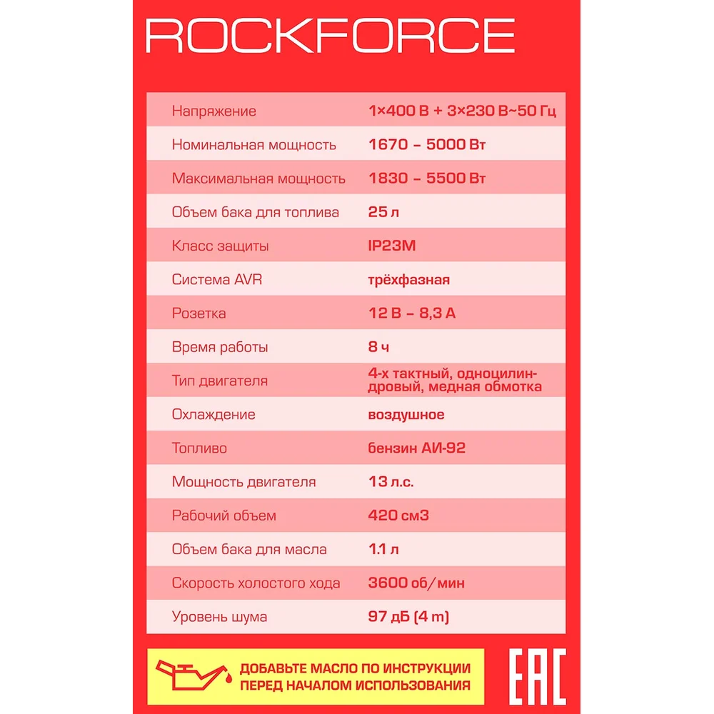Генератор бензиновый с электрозапуском Rockforce 25л, 1670-5000Вт, 13л.с RF-FY6500(60803)