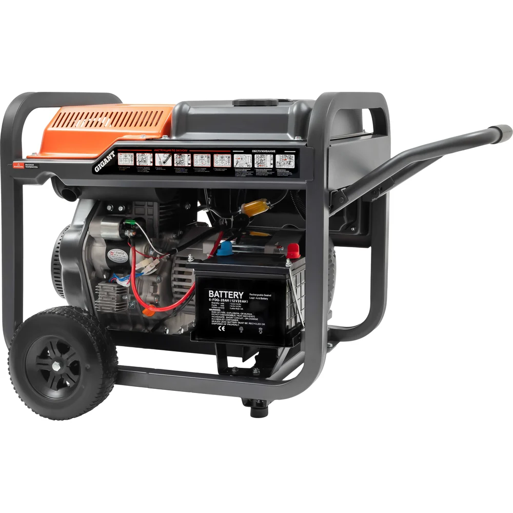 Купить Дизельный генератор Gigant (5,5 кВт; эл.стартер; колёса и ручки) GDGL-5500 по лучшей цене с доставкой - интернет магазин №1 в России