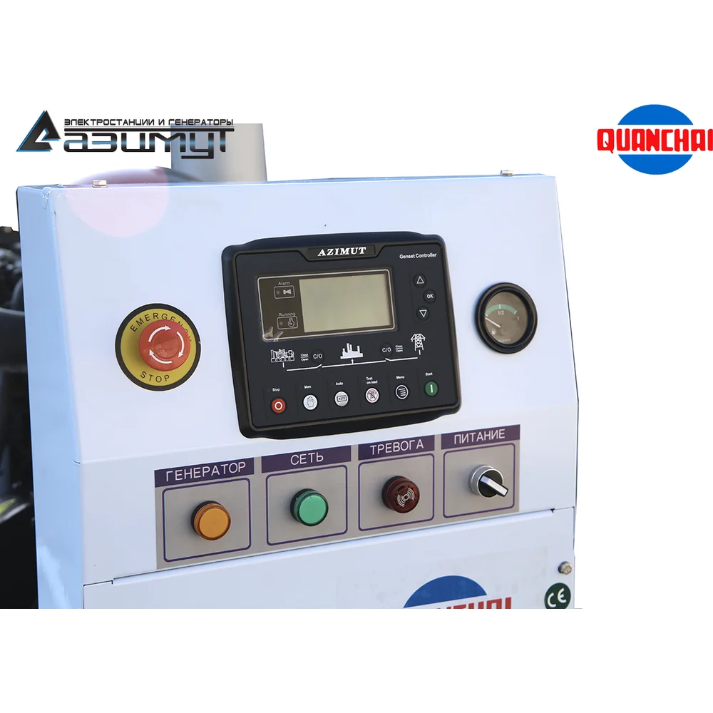 Дизельный генератор ООО "ПК "АЗИМУТ" QUANCHAI 12 кВт, 400В, открытый на раме, АВР, СЗУ, ПОЖ АД-12С-Т400-2РМ5