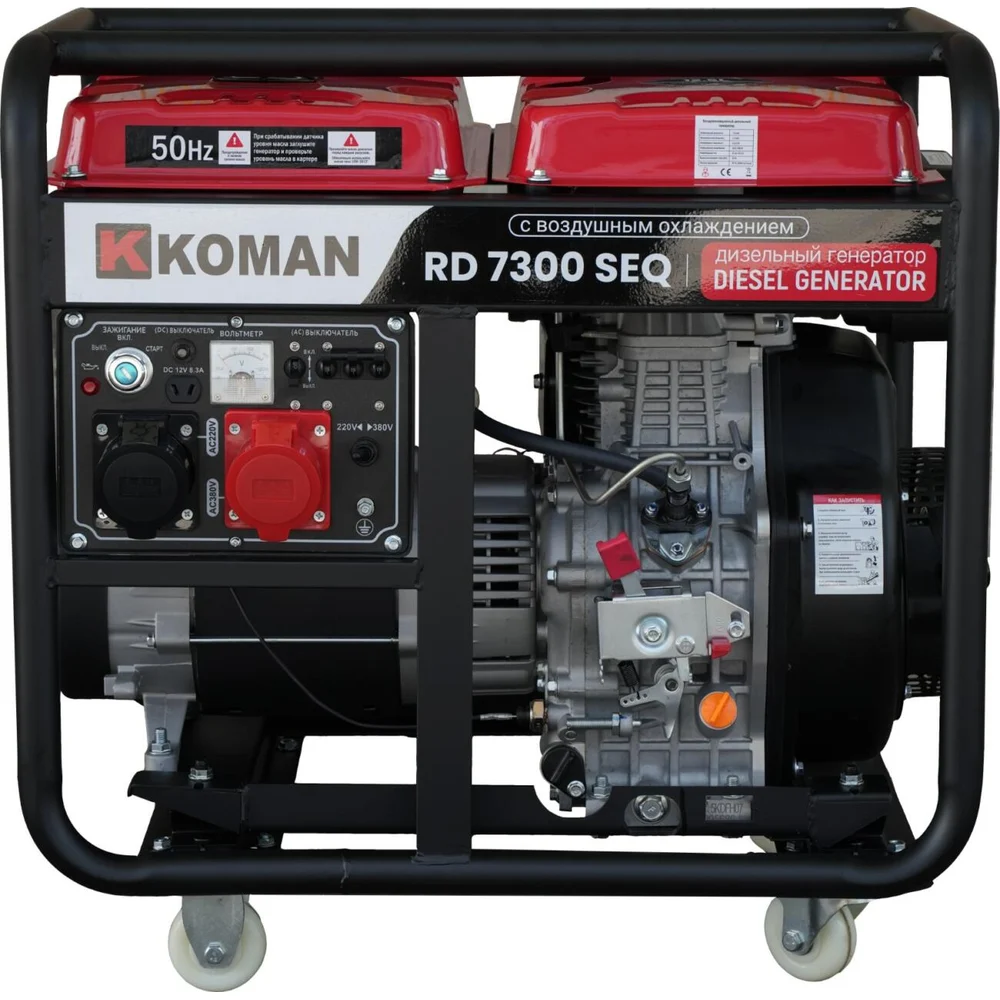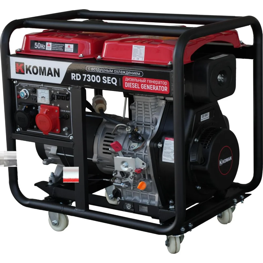 Купить Генератор дизельный KOMAN 220В/380В, мощность 7000Вт-7300Вт, силовая розетка, эл. стартер, колеса RD7300SEQ по лучшей цене с доставкой - интернет магазин №1 в России