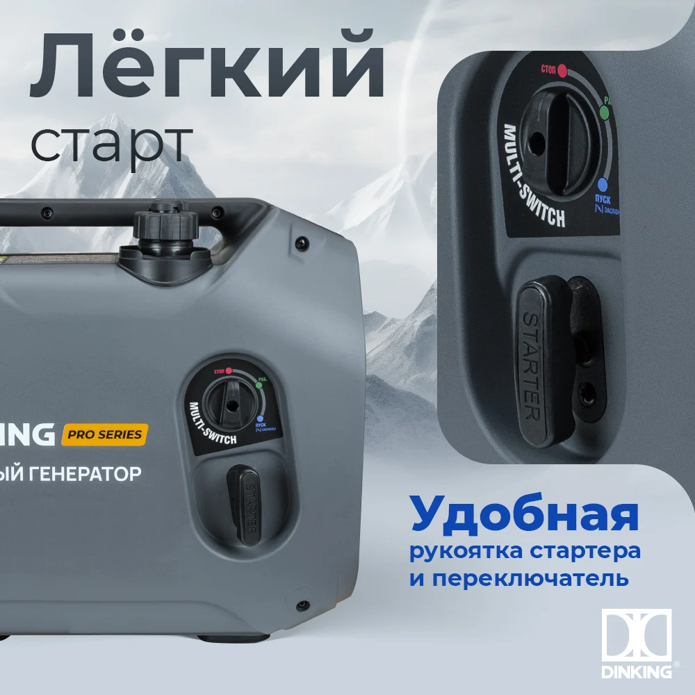 Бензиновый инверторный генератор Dinking DK2500iC (2.5 кВт, 230 В/50Гц, DK164F/P-2, бак 4 л) ГЕН034