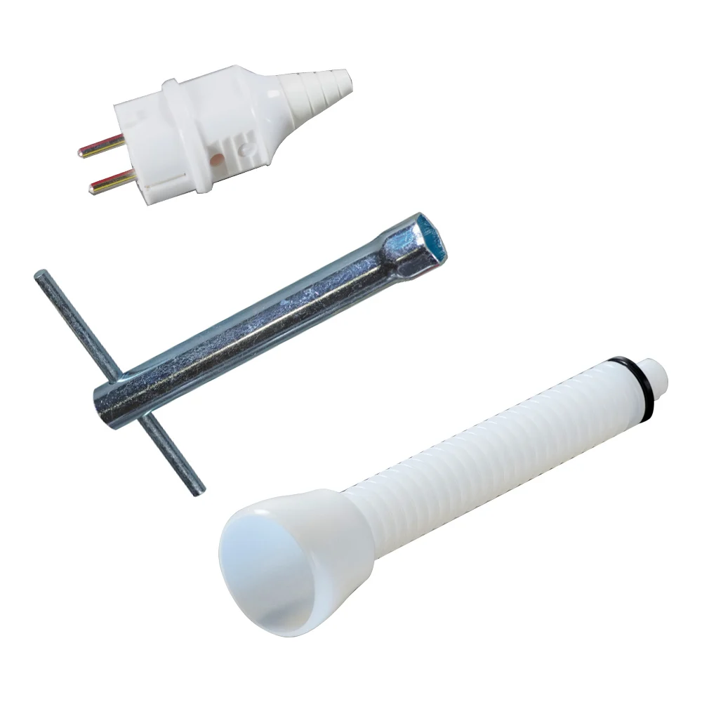 Комплектация Штепсельная вилка 220В/16А– 1шт; Ключ свечной – 1 шт; Комплект проводов для DC – 1 шт; Емкость для заливки масла – 1 шт; Отвертка – 1 шт; Инструкция – 1 шт