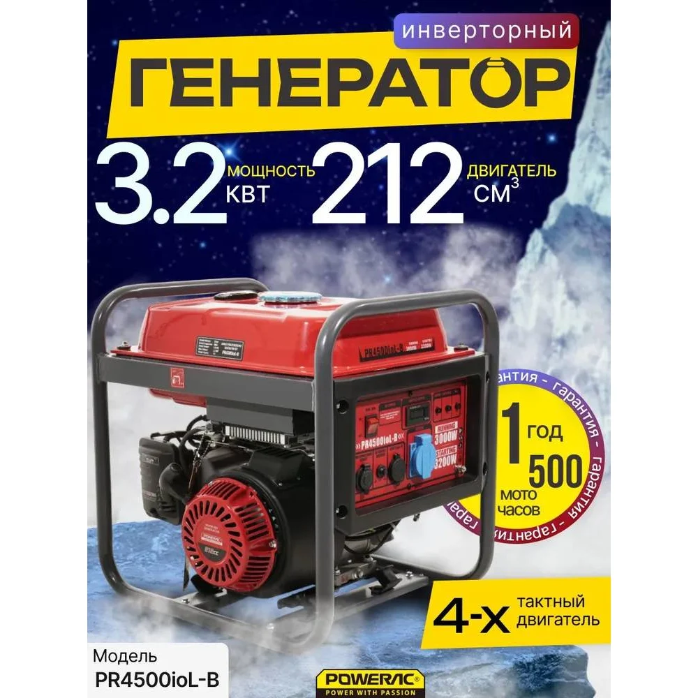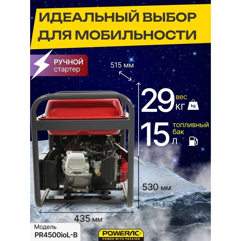Купить Генератор бензиновый инверторный POWERAC 3.0 кВт, 230В, 50Гц, 4-тактный PR4500ioL-B по лучшей цене с доставкой - интернет магазин №1 в России