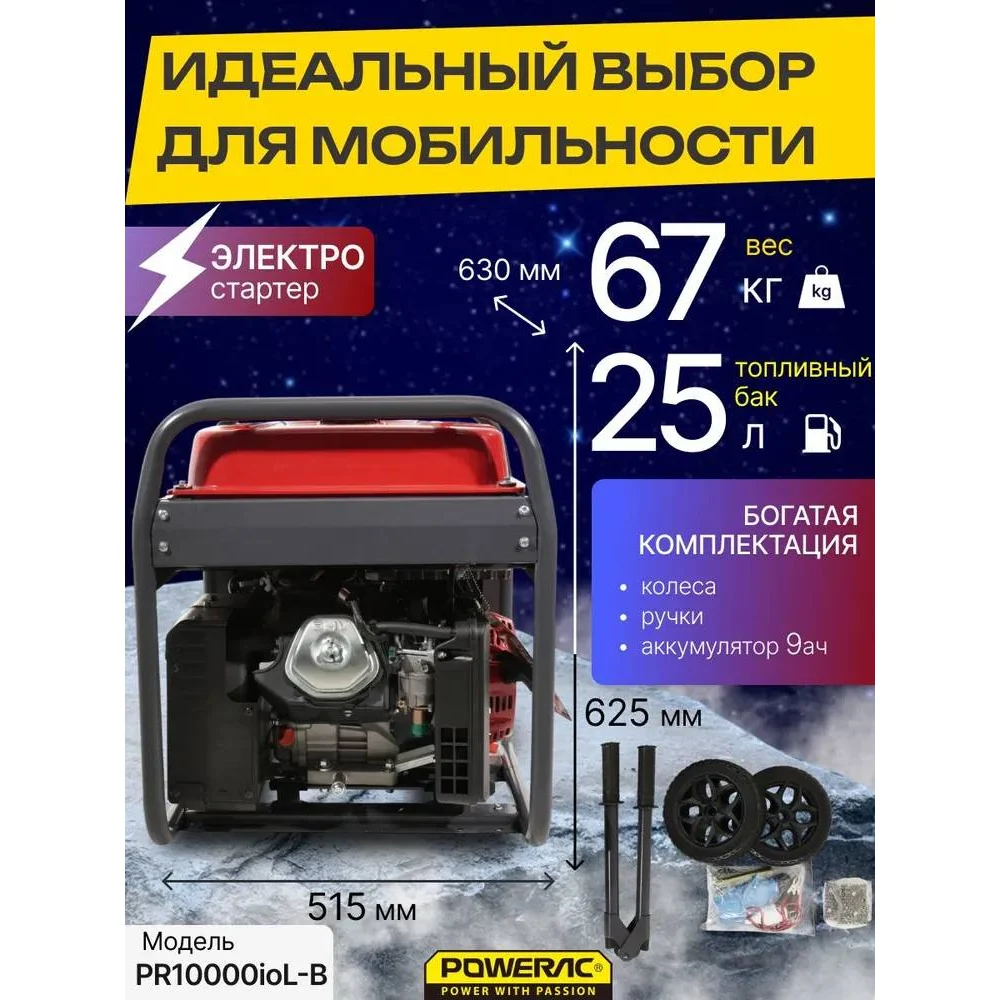 Купить Генератор бензиновый инверторный POWERAC 7.5 кВт, 230В, 50Гц, 4-тактный PR10000ioL-B по лучшей цене с доставкой - интернет магазин №1 в России