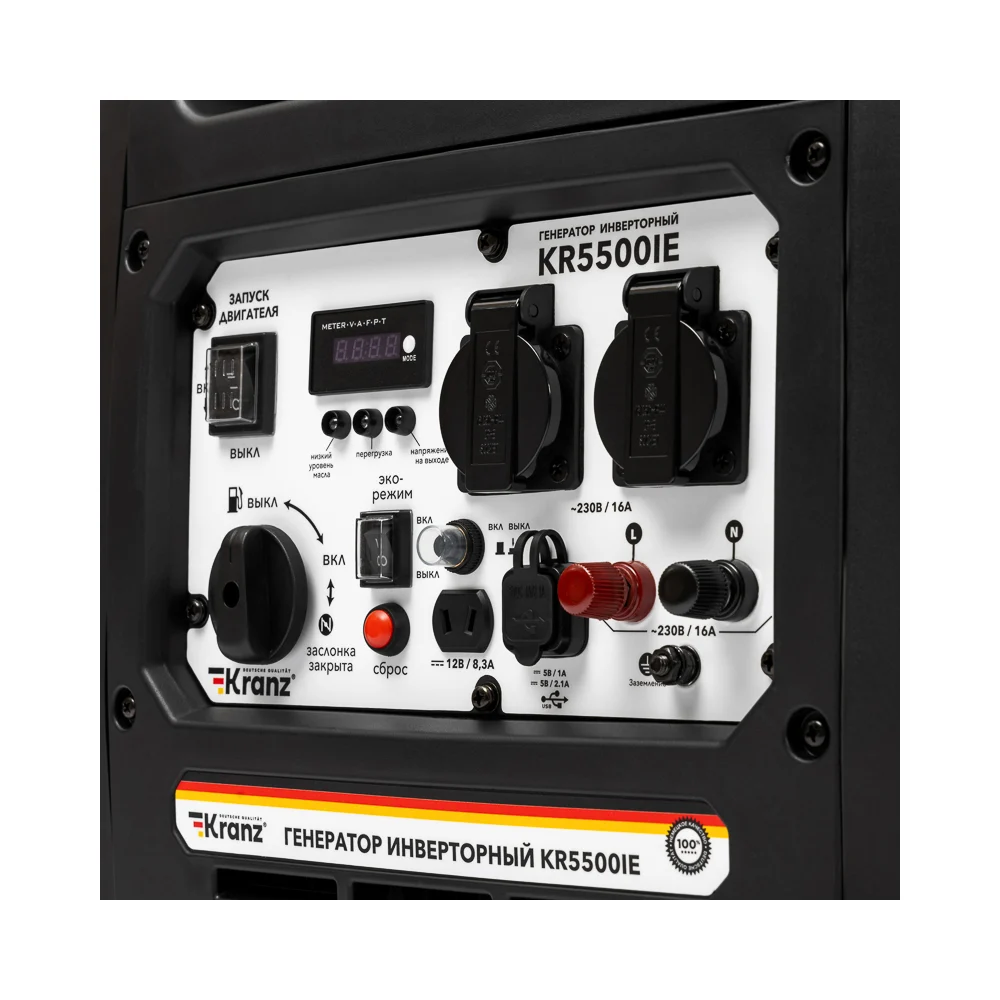 Купить Генератор инверторный KRANZ KR5500IE, 5,5кВт, 230В, 10л, закрытый корпус, электростартер KR-16-1146 по лучшей цене с доставкой - интернет магазин №1 в России