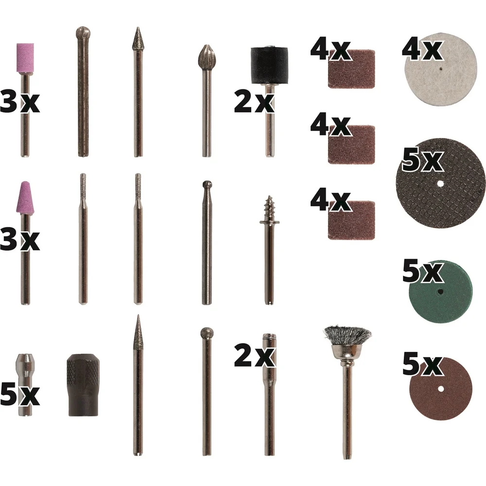 Комплектация Гравер; Зарядное устройство; Набор аксессуаров 57 предметов