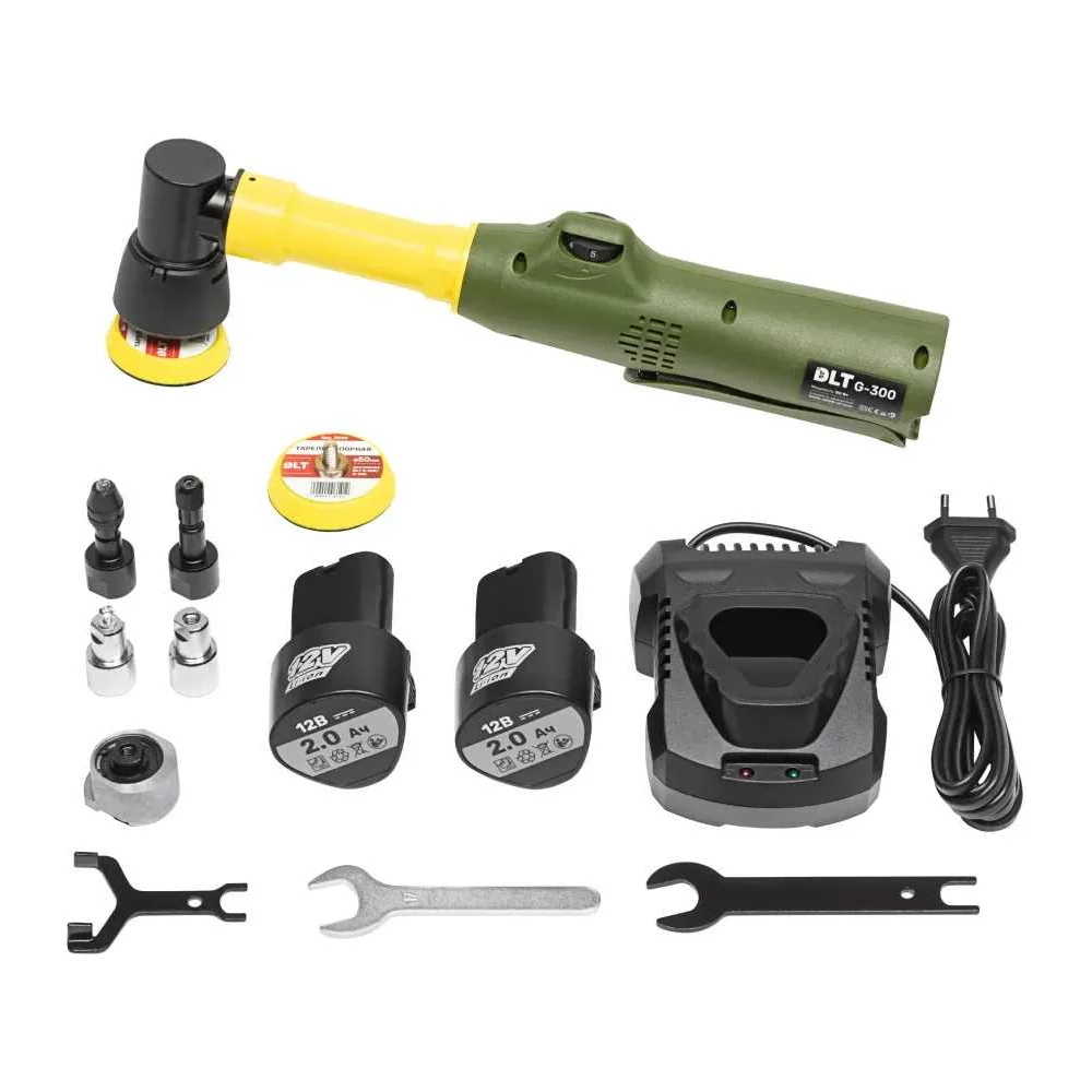 Комплектация Литий-ионный аккумулятор (Li-ion) ёмкостью 2000mAh и 12V -2шт; Зарядная станция 12,6B/2.4A; Опорная тарелка Ø 50 мм, хвостовик М 5,8мм - 2шт; Насадка-цанга: 3.0/3.2 мм -1шт; Насадка переходник с М11на М 2,9 мм-1шт; Насадка переходник с М11на М 5,8 мм-1шт; Насадка быстрозажимной патрон -1шт; Насадка эксцентрик (ход эксцентрика): 4мм- 1шт; Насадка эксцентрик (ход эксцентрика): 2,5мм- 1шт; Набор ключей для крепления оснастки; Сумка-кейс для транспортировки и хранения