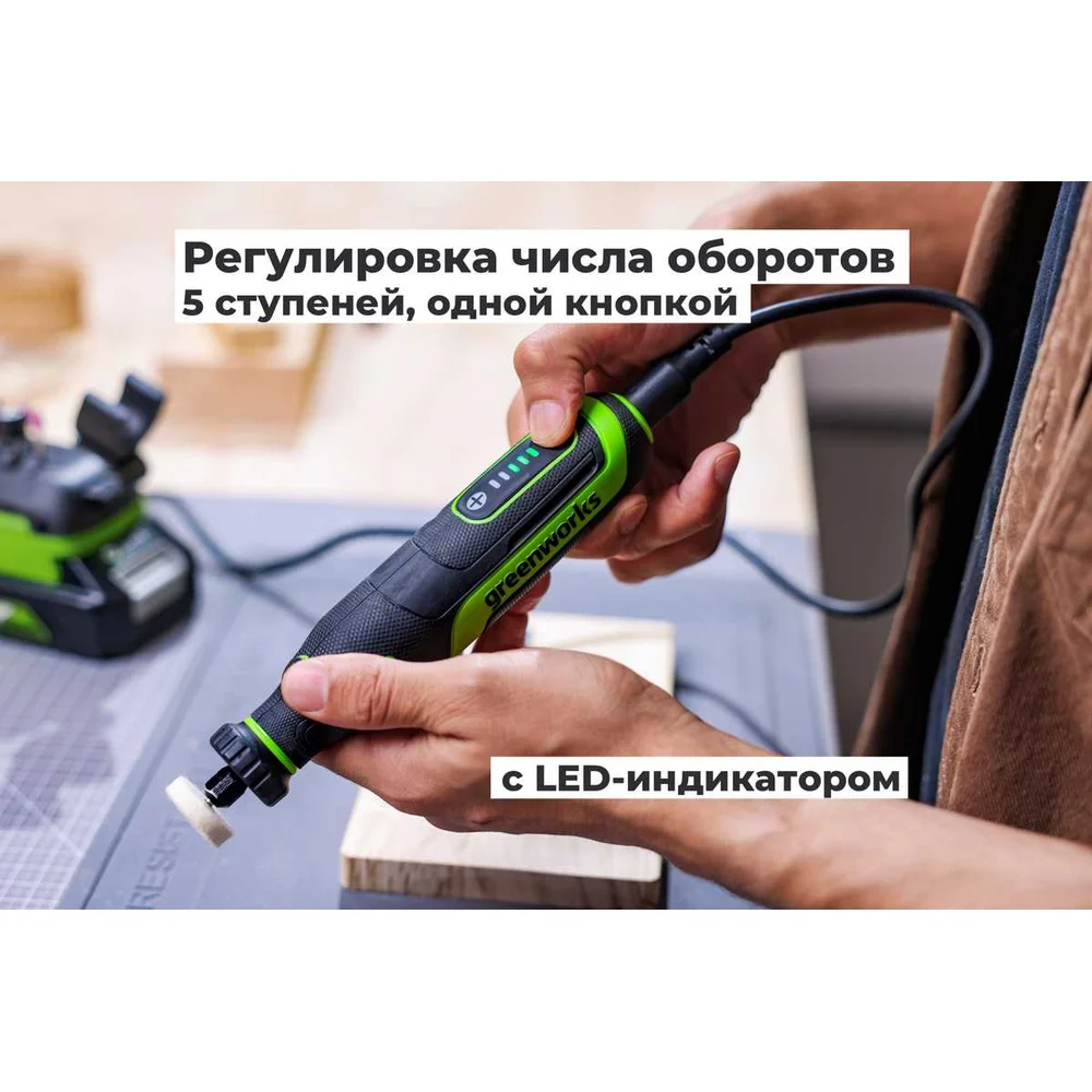 Купить Гравер GreenWorks G24RT, 24V, б/щет, цанги 2.4/3.2мм, 6500–35000 об/мин, оснастка 52 шт, 1x2Ач,ЗУ, сумка, коробка 3200807VUA по лучшей цене с доставкой - интернет магазин №1 в России