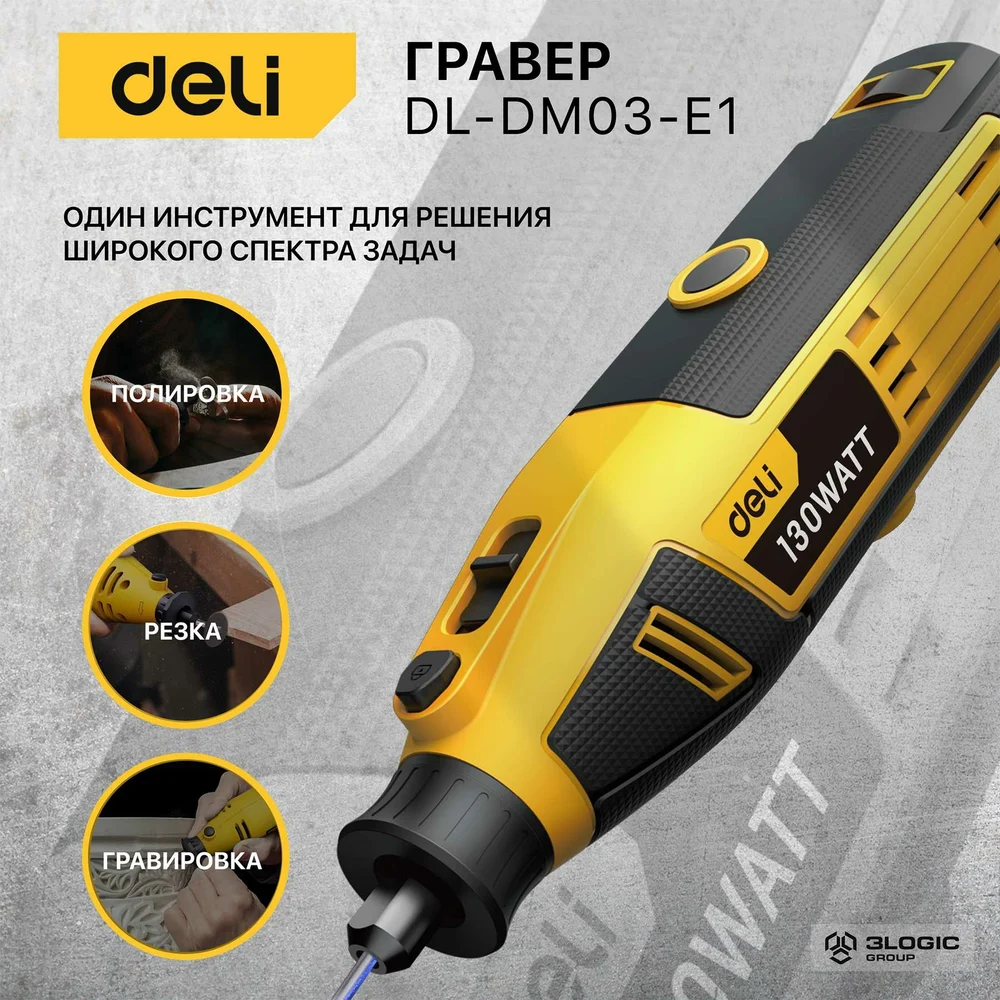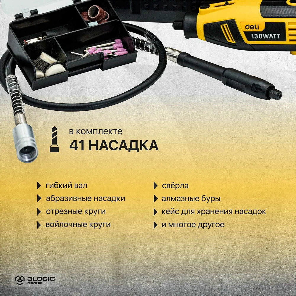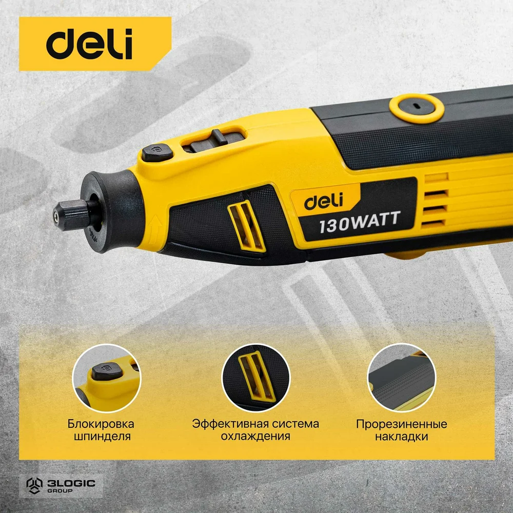 Купить Электрический гравер DELI DL-DM03-E1 ( с гибким валом, 130Вт, цанга 3,2мм, 10000-32000об/мин, кейс + 41 насадка) 102877 по лучшей цене с доставкой - интернет магазин №1 в России