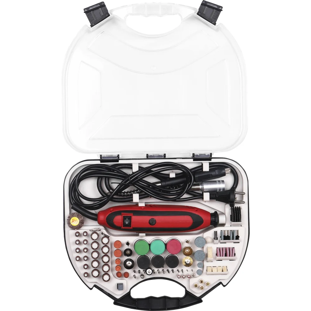 Комплектация Электрический гравер; Гибкий вал; Набор насадок (211 предметов); Инструкция с гарантийным талоном; Кейс пластиковый с прозрачной крышкой