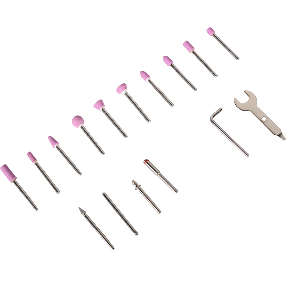 Комплектация Гравер; Набор насадок; Ключ рожковый 1 шт; Гибкий вал 1 шт; Паспорт 1 шт; Пластиковый кейс